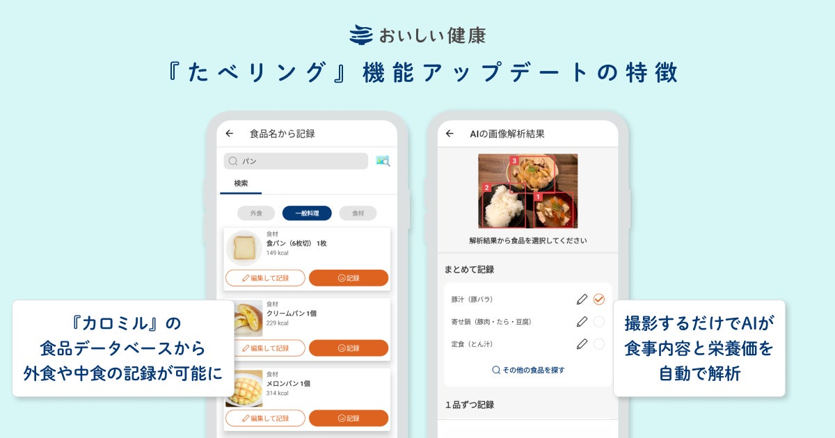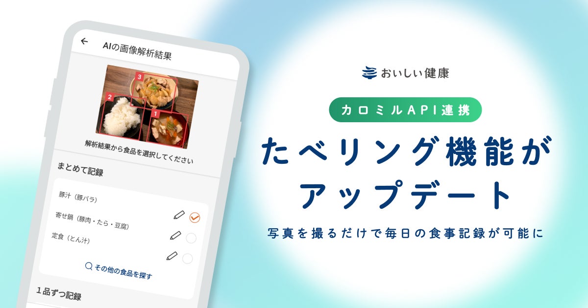 『おいしい健康アプリ』に『カロミル』AI画像解析機能を搭載!面倒な食事管理がもっと便利に