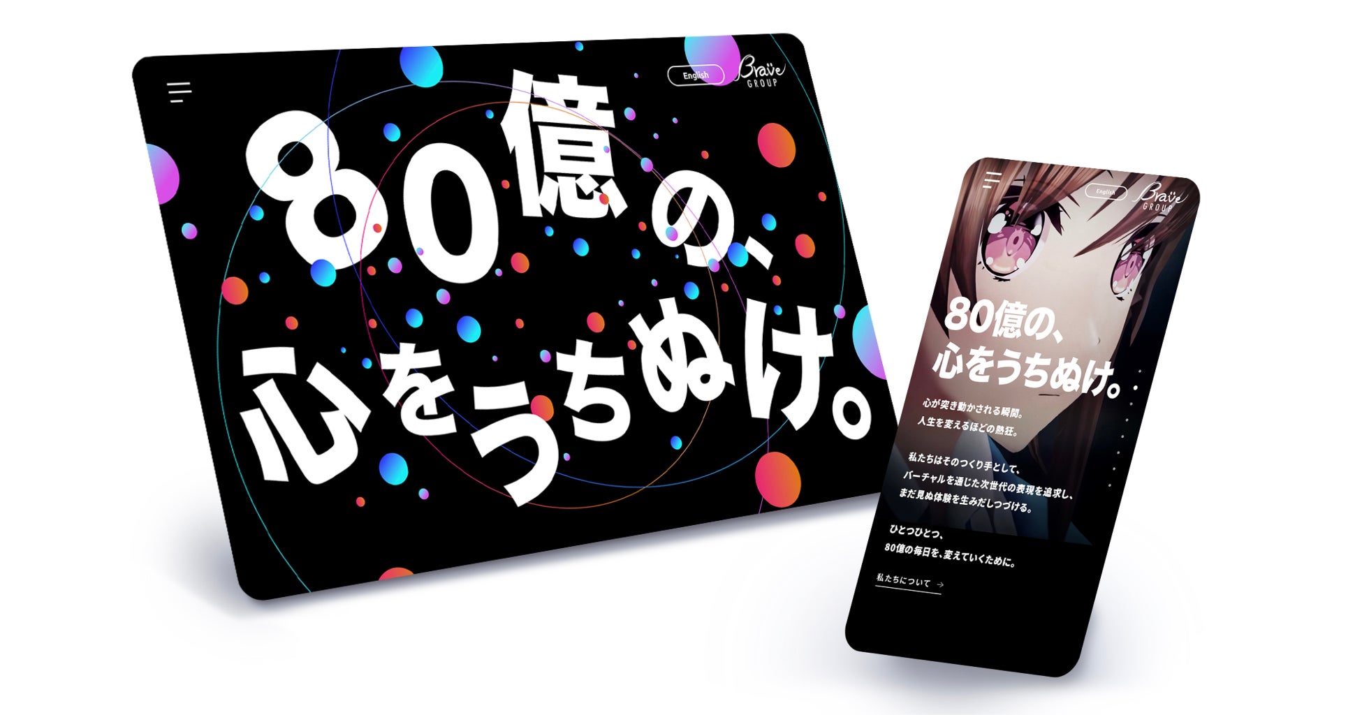 Brave groupでは、これまで「エンターテイメントを通して世の中を笑顔に」というミッションのもと事業を運営してまいりましたが、より全世界の人々に、より感動、新しい体験を与えたいという思いから、「80億の、心をうちぬけ」というミッションを掲げました。このミッションをもとに、バーチャルを通じた次世代の表現を追求し、全世界の人々の感動や新しい体験を生みだし続けていきます。