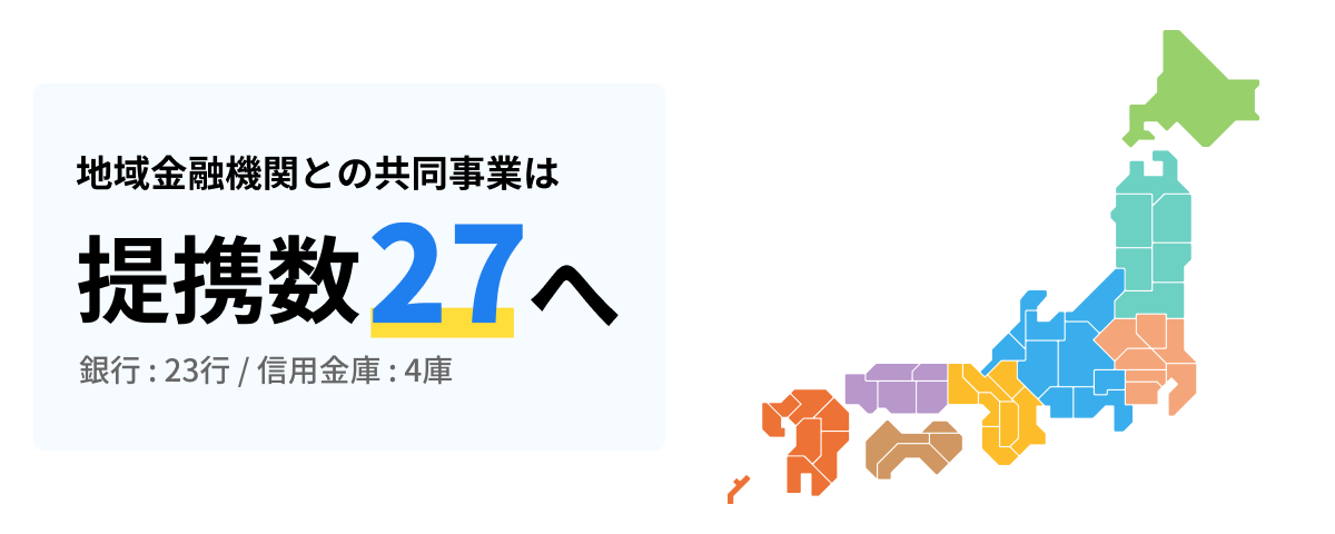 岡崎信用金庫との提携により、OLTAがクラウドファクタリング事業でOEM提携する地域金融機関は27先になります。また、OLTAは同サービスの提供に先立って岡崎信用金庫と資本提携を行っており、これにより両社は長期かつ効果的な地域の中小企業・個人事業主様のサポートを実現します。