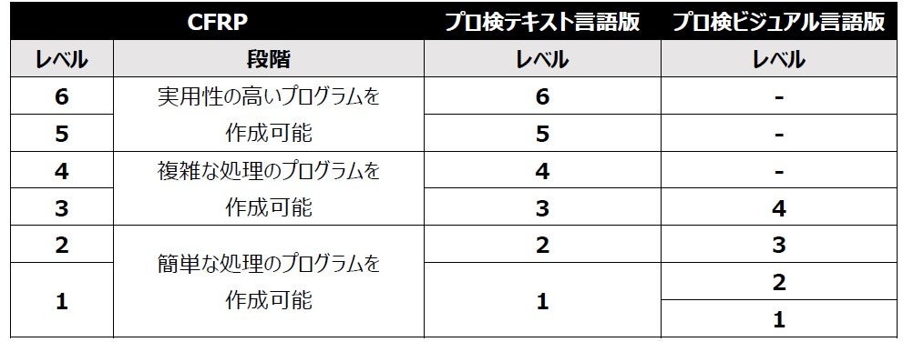 『プログラミング能力検定』協会が提供するプロ検はCFRPに準拠しております。プロ検を受験いただくことで、CFRPに沿い現状のプログラミング能力値を測定・把握することが可能です。