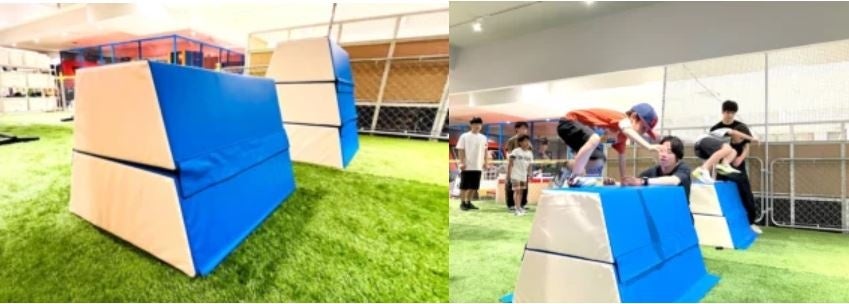 このエリアの設計監修を行ったのは、日本初のパルクールのプロチーム「monsterpk」が指導するMISSION PARKOUR PARK TOKYO。トップアスリートもトレーニングに訪れる国内最大級の施設のノウハウを活かし、初心者向けの安全設計と本格的な体験を両立させました。