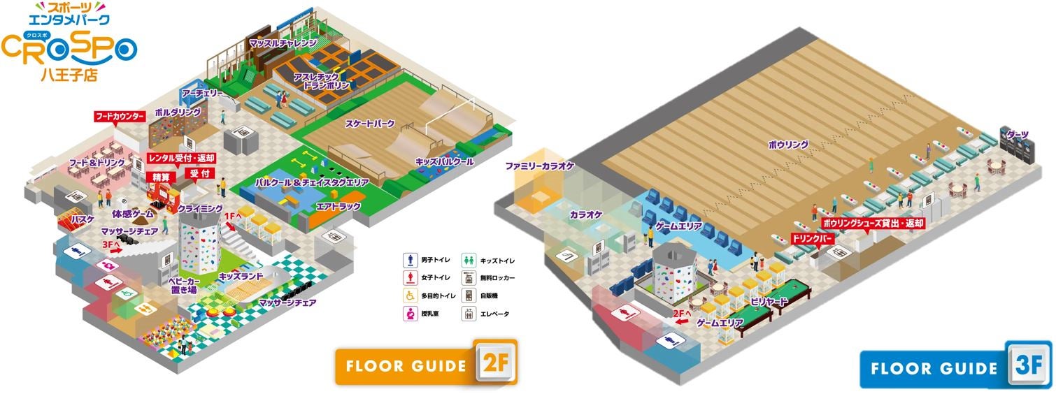 パルクール&チェイスタグエリア・アスレチックトランポリン・スケートパーク・キッズパルクール・エアトラック・マッスルチャレンジ・クライミング・ボルダリング・アーチェリー・バスケ・ボウリング・ビリヤード・ダーツ・カラオケ・キッズランド・ボードゲーム・体感ゲーム・アーケードゲーム・クレーンゲーム