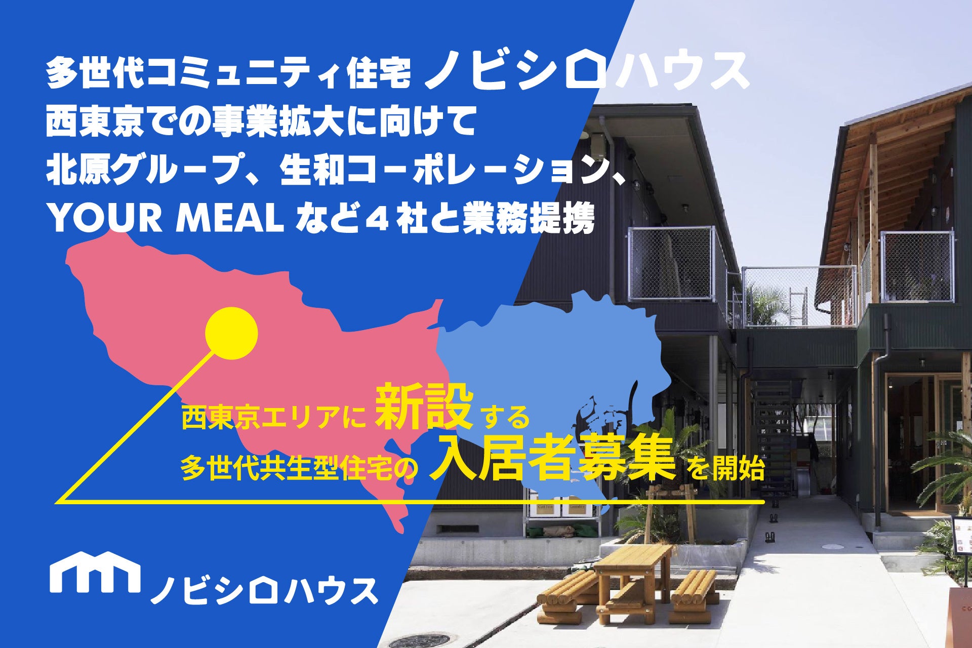 多世代コミュニティ住宅「ノビシロハウス」が西東京での事業拡大に向けて、北原グループ、生和コーポレーション、YOUR MEALなど4社と業務提携
