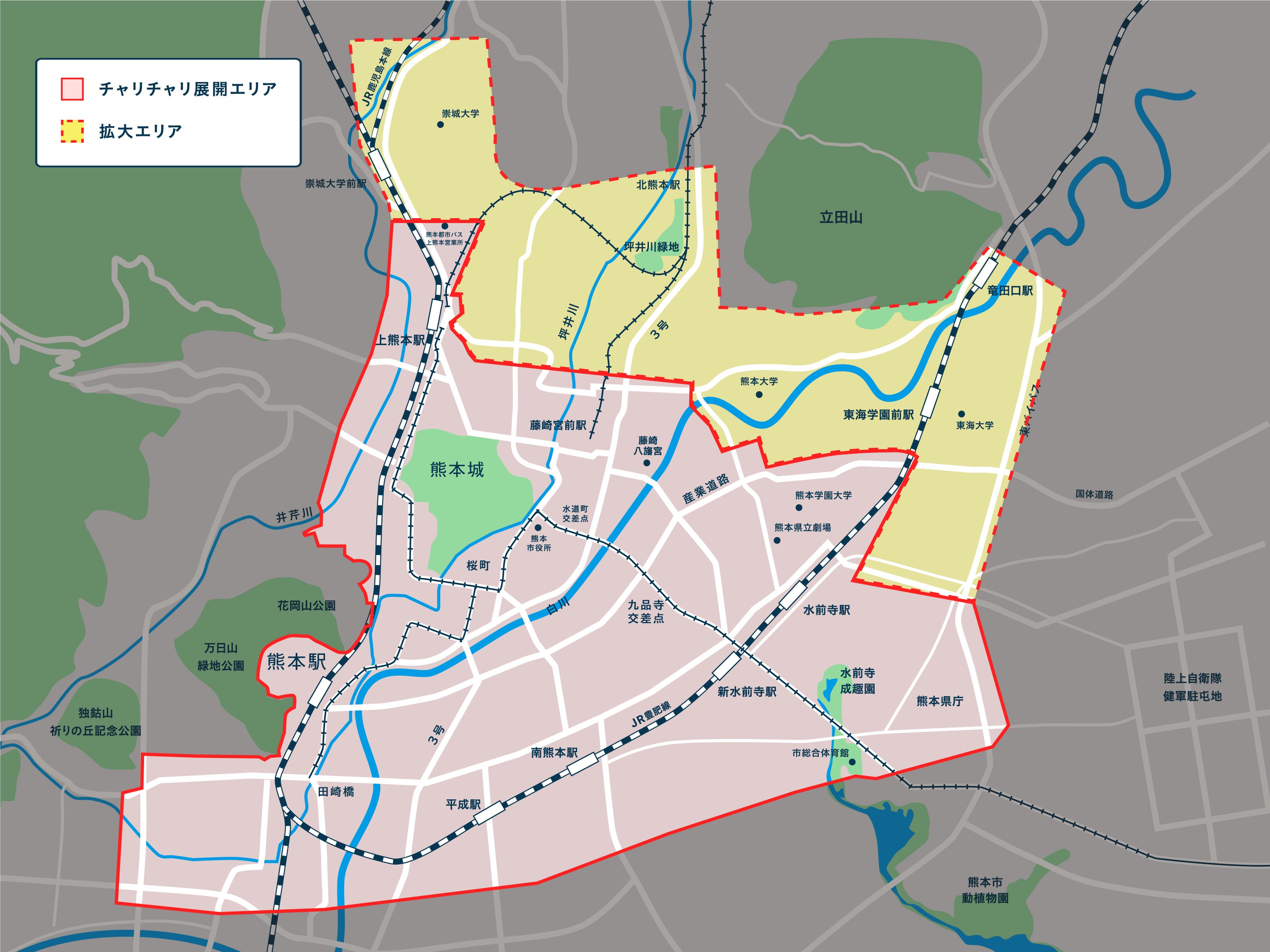neuetは、2023年10月2日より熊本市内におけるチャリチャリのサービス展開エリアを大幅に拡大いたしました。