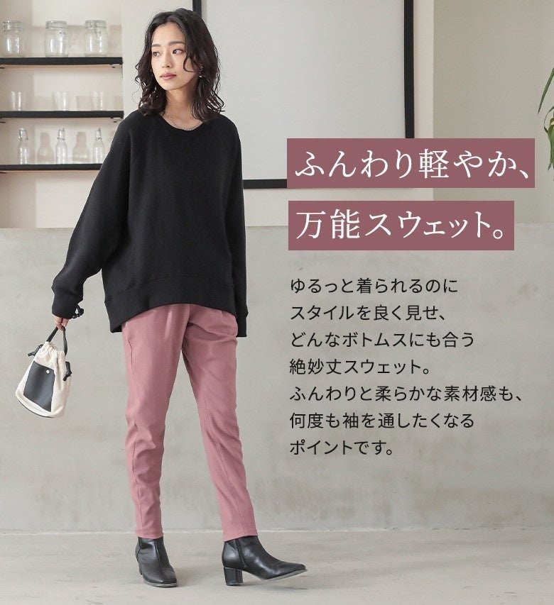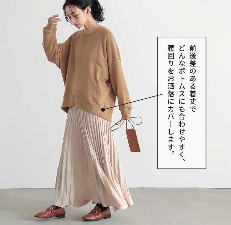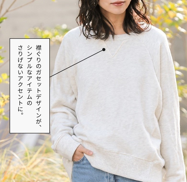 シンプルなデザインで、デイリーユースにぴったりな裏毛クルーネックスウェット。ふんわりとした着心地で、思わず触れたくなる一着です。