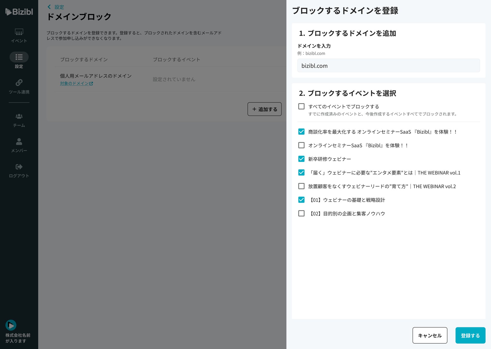 ウェビナーマーケティングSaaS「Bizibl」が「特定ドメインからの申し込みブロック機能」を公開