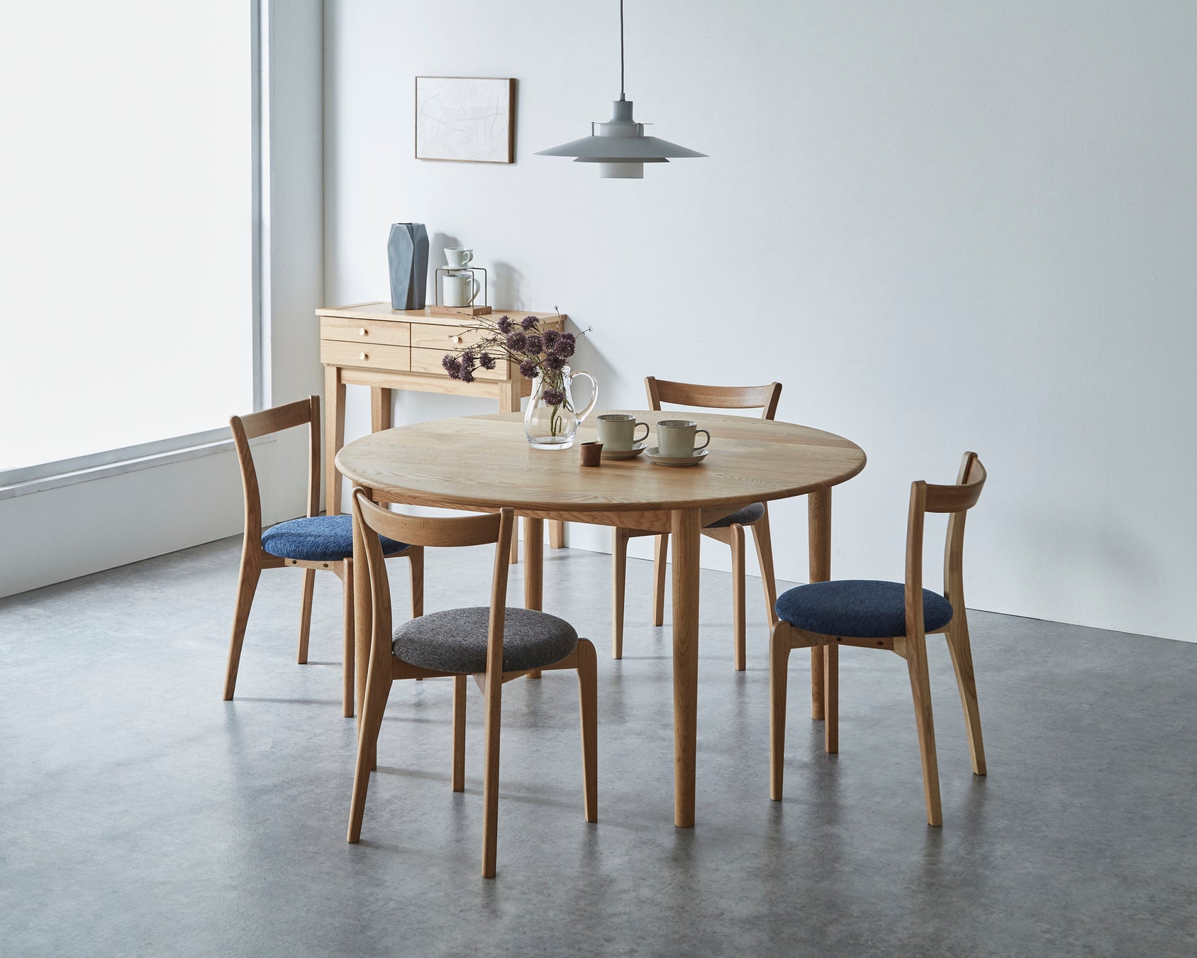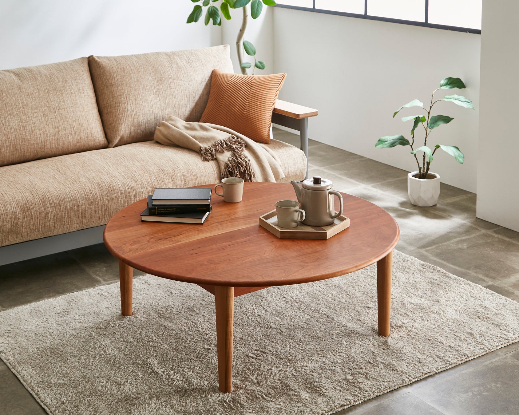 無垢材をぜいたくにもちいた丸テーブルが新登場。