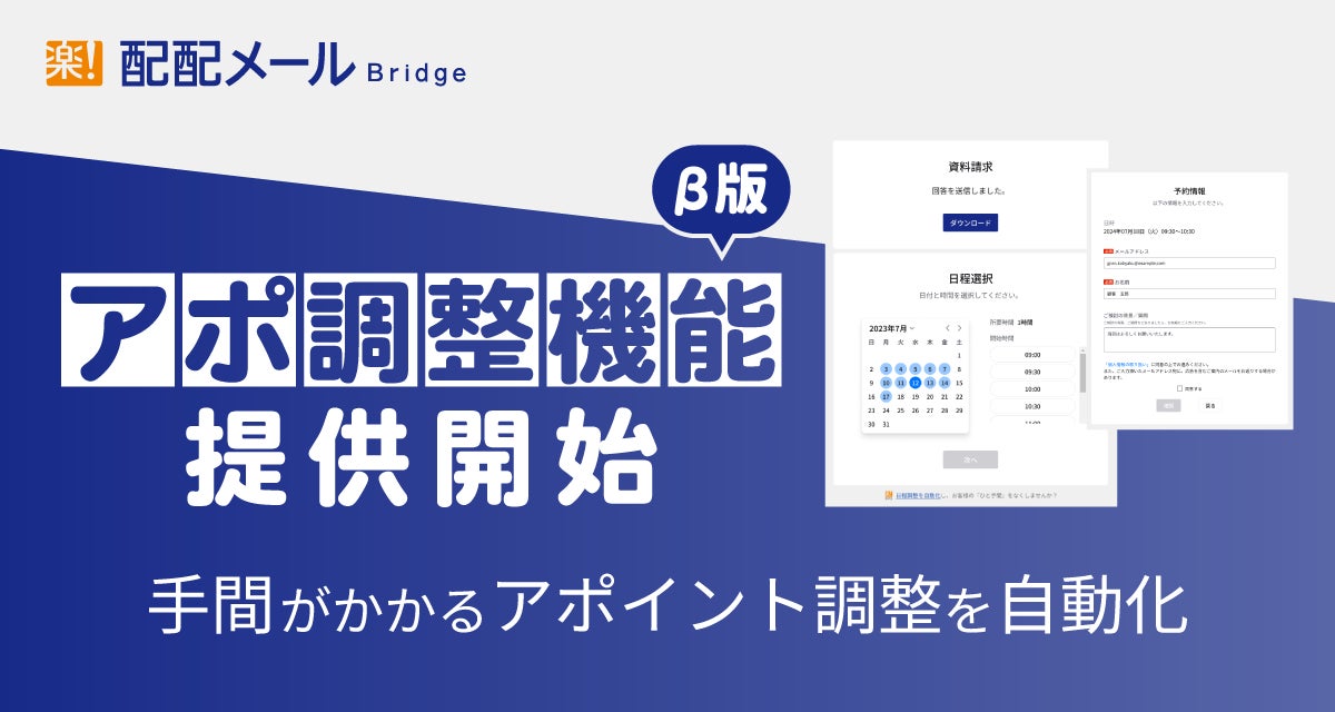 株式会社ラクス(本社:東京都渋谷区、代表取締役:中村 崇則)が提供する「配配メールBridge」は、新機能として「アポ調整機能」をリリースいたします。