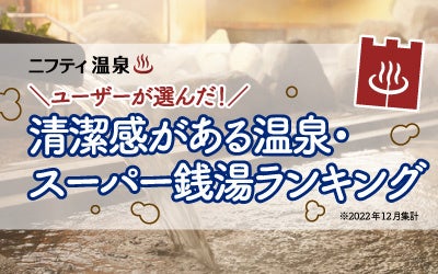 ニフティライフスタイル株式会社(本社:東京都新宿区、代表取締役社長:成田 隆志)が運営する「ニフティ温泉」は、掲載している全国16,328件(2022年12月31日時点)の温泉・温浴施設からユーザーの投票で選ばれた「清潔感がある温泉・スーパー銭湯ランキング」 を発表いたしました。