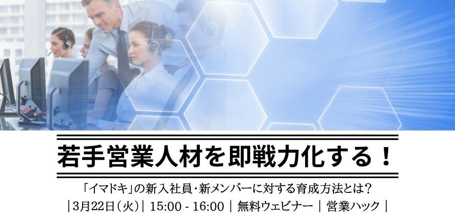 「営業の悩みを0にする」をミッションに営業支援を行っている株式会社営業ハック(本社:東京都港区、代表取締役:笹田裕嗣)が、3月22日(火)15:00〜16:00に無料ウェビナーを開催いたします。今回のテーマは「若手営業人材の育成」イマドキと称される新卒入社社員や第二新卒転職者など、社会人歴の浅いメンバーの育成におけるポイントをお話させていただきます。