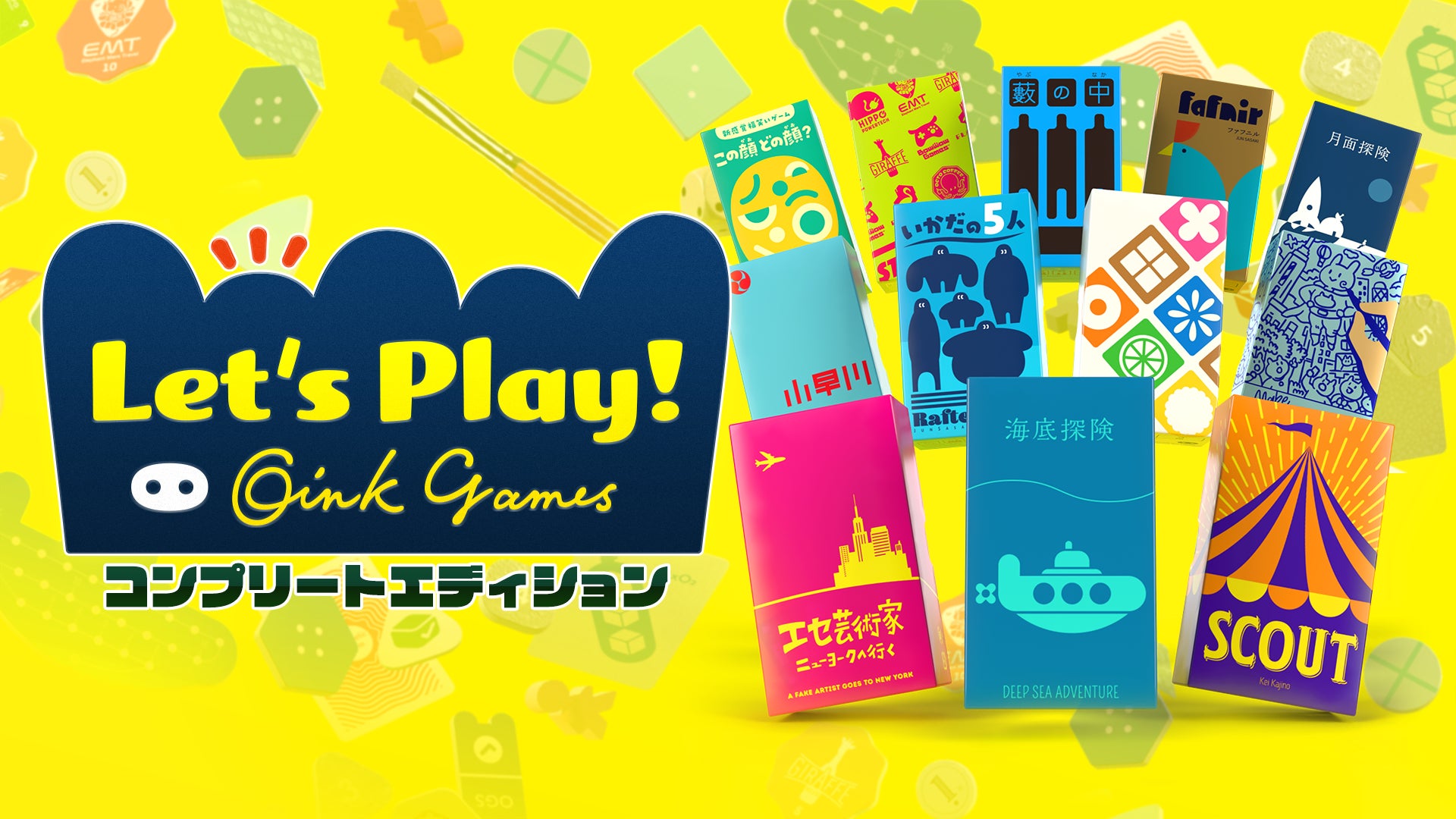 ボードゲーム業界で世界的に知名度を伸ばしているオインクゲームズのゲーム群が、Nintendo Switch/Steam/スマホ/PlayStation 5で遊べます。直接会うことができなくても、ひとつのテーブルを囲んでいるかのように気軽にボードゲームが楽しめます。おうちで家族と遊ぶもよし、友達や知らない人とオンラインで遊ぶもよし。気軽に笑えるゲームから 、頭を悩ませる本格ゲームまで。CPUと対戦して腕試しできるタイトルも。 タイトルは、全世界で30万部のヒット作「海底探険」に、おえかき人狼ゲーム「エセ芸術家ニューヨークへ行く」 。投資家となってお金を稼ぐことを目指す「スタータップス」に、宇宙飛行士となりミッションに挑む協力ゲーム 「月面探険」。顔づくりパーティーゲーム「この顔どの顔?」や推理と騙し合いのゲーム「藪の中」、オークションのような駆け引きが楽しめる「ファフニル」を収録。また、2022 Spiel des Jahres にノミネートされた「SCOUT」と国内累計販売数30万部を突破したスピードパズルゲーム「ナインタイル」、ゴールデンボックス ボードゲームアワード2022の作品賞に選ばれた「まちがいさがし開発課」、カジノのギャンブルのような雰囲気を持ったシンプルなカードゲーム「⼩早川」、さらに、ハラハラドキドキの頭脳派バランスゲーム「いかだの5⼈」もDLCを購入することで遊べるようになります。
