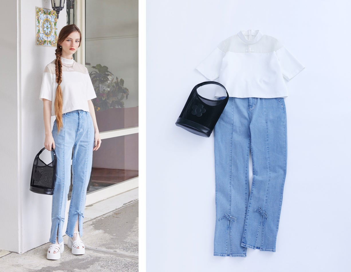 メッシュやレースなどのシアーな素材を活かした夏らしいアイテムから、クロップドTシャツやエナメルバッグなどスポーツミックスなアイテムまで豊富にラインナップ。