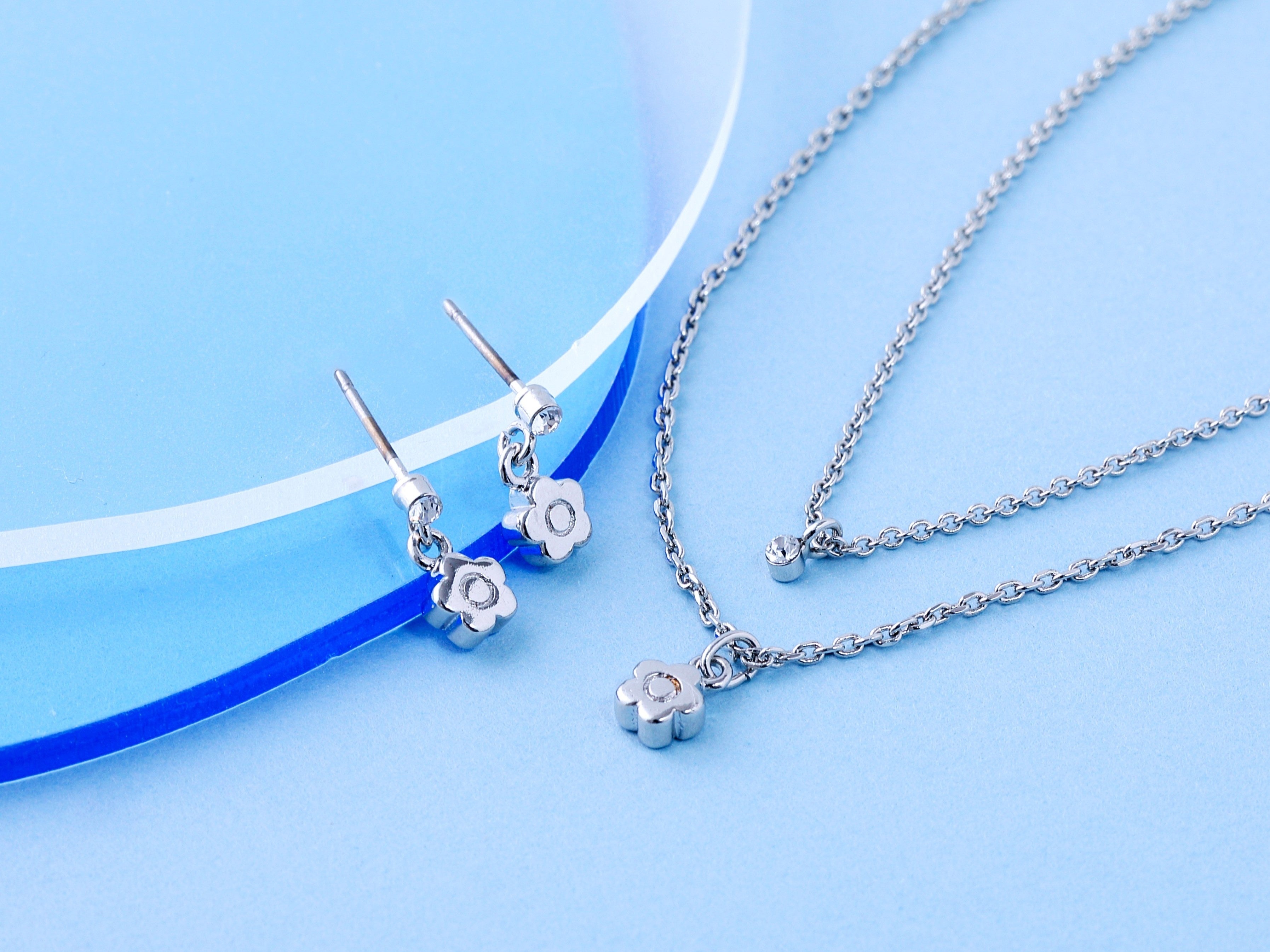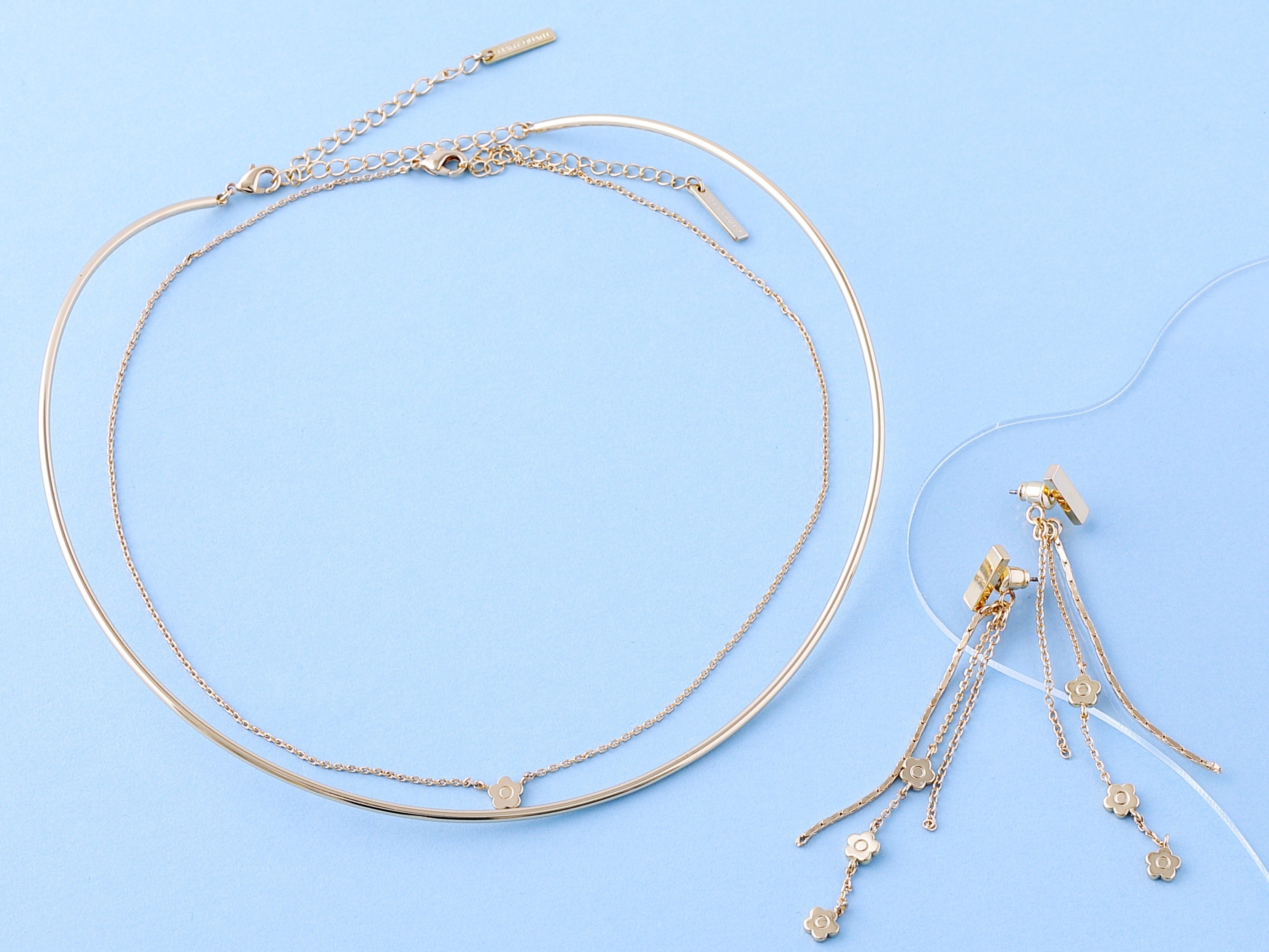 マリークヮントのアイコン、デイジーがあふれ出す世界を、ブルーグレーをキーカラーに、涼しげなチュールや、輝くパールとともに表現。