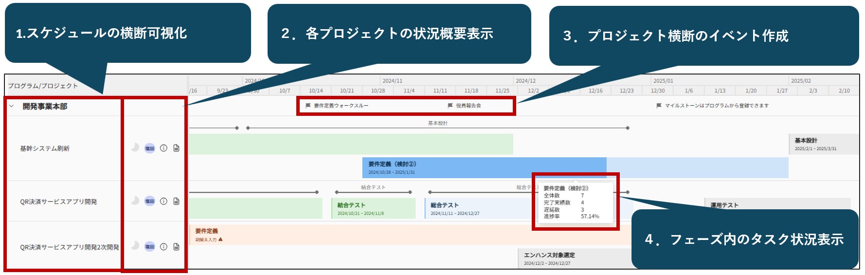 プログラム配下の各プロジェクトのスケジュールを横断的に可視化して表示