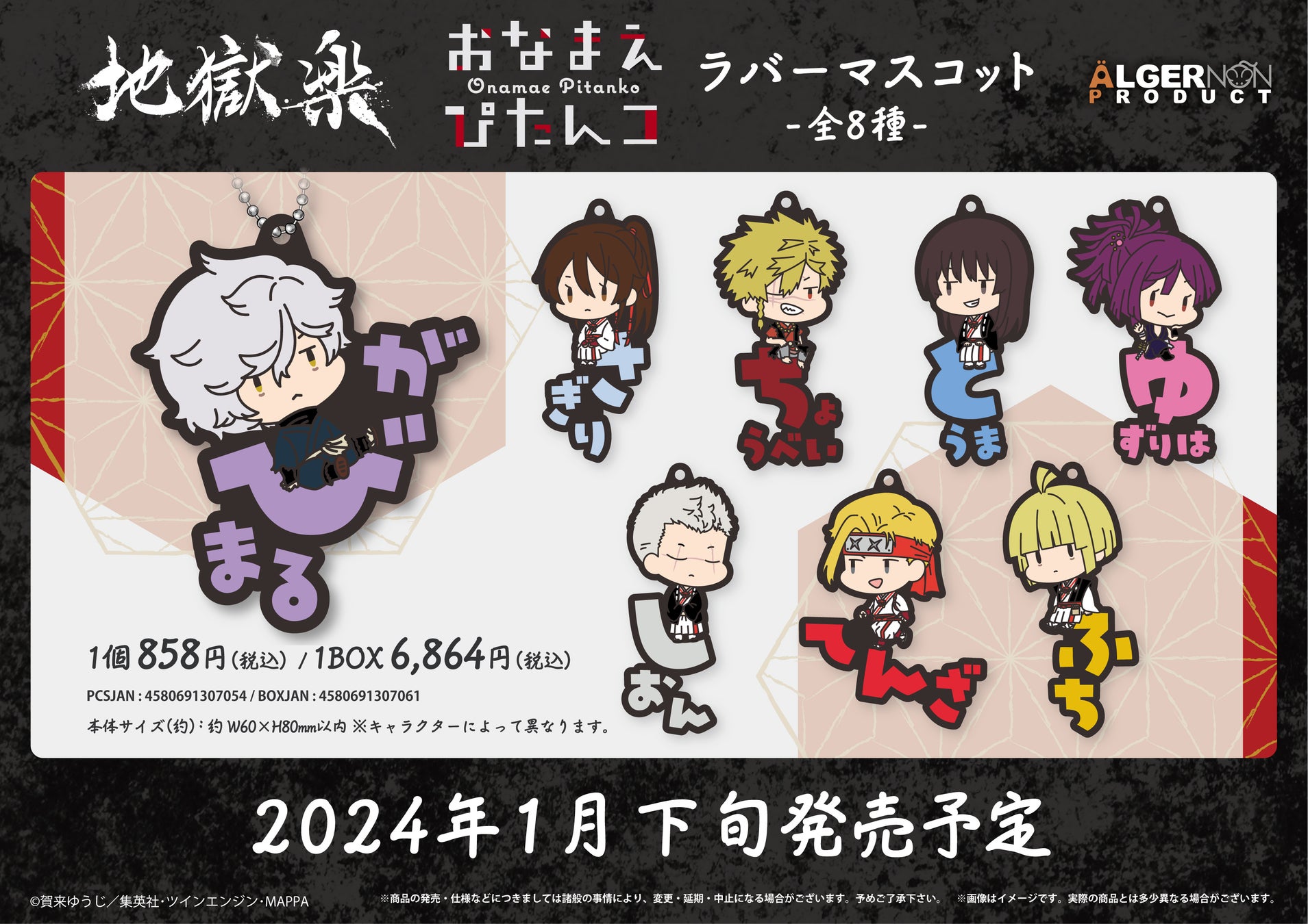株式会社アルジャーノンプロダクト(本社:東京都台東区、代表:内山田 昇平)は、TVアニメ「地獄楽」の新商品グッズを、全国のグッズ・ホビー取扱ショップや、量販店および主要オンラインショップ等にて予約販売を開始いたします。