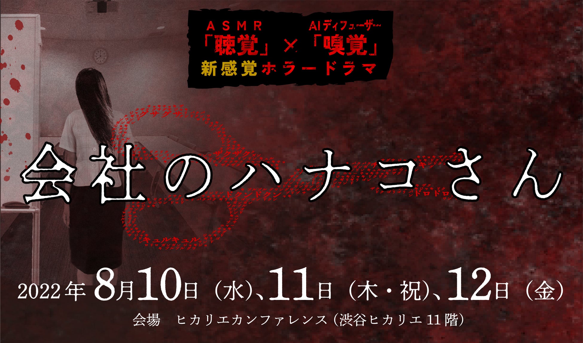 松竹株式会社が手掛けるお化け屋敷ブランド「松竹お化け屋本舗」は、株式会社シアターワークショップと連携し、ASMRホラードラマ「会社のハナコさん」を企画製作し、2022年8月10日(水)~8月12日(金)(於:渋谷ヒカリエ ヒカリエカンファレンス)において上演致します。