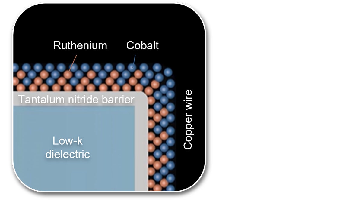 現在の最先端ロジックチップには数百億個ものトランジスタが搭載され、これらを相互接続する微細な銅配線は全長60マイル(約100キロメートル)以上にも及びます。チップ内の各層の配線は、まず絶縁材料の薄膜に回路状の溝(トレンチ)をエッチングし、そこに銅を充填して作られます。Low-k絶縁膜と銅の組み合わせは、過去数十年にわたって配線工程の業界標準の座を占め、世代が代わるごとにスケーリング、パフォーマンス、電力効率を向上させてきました。