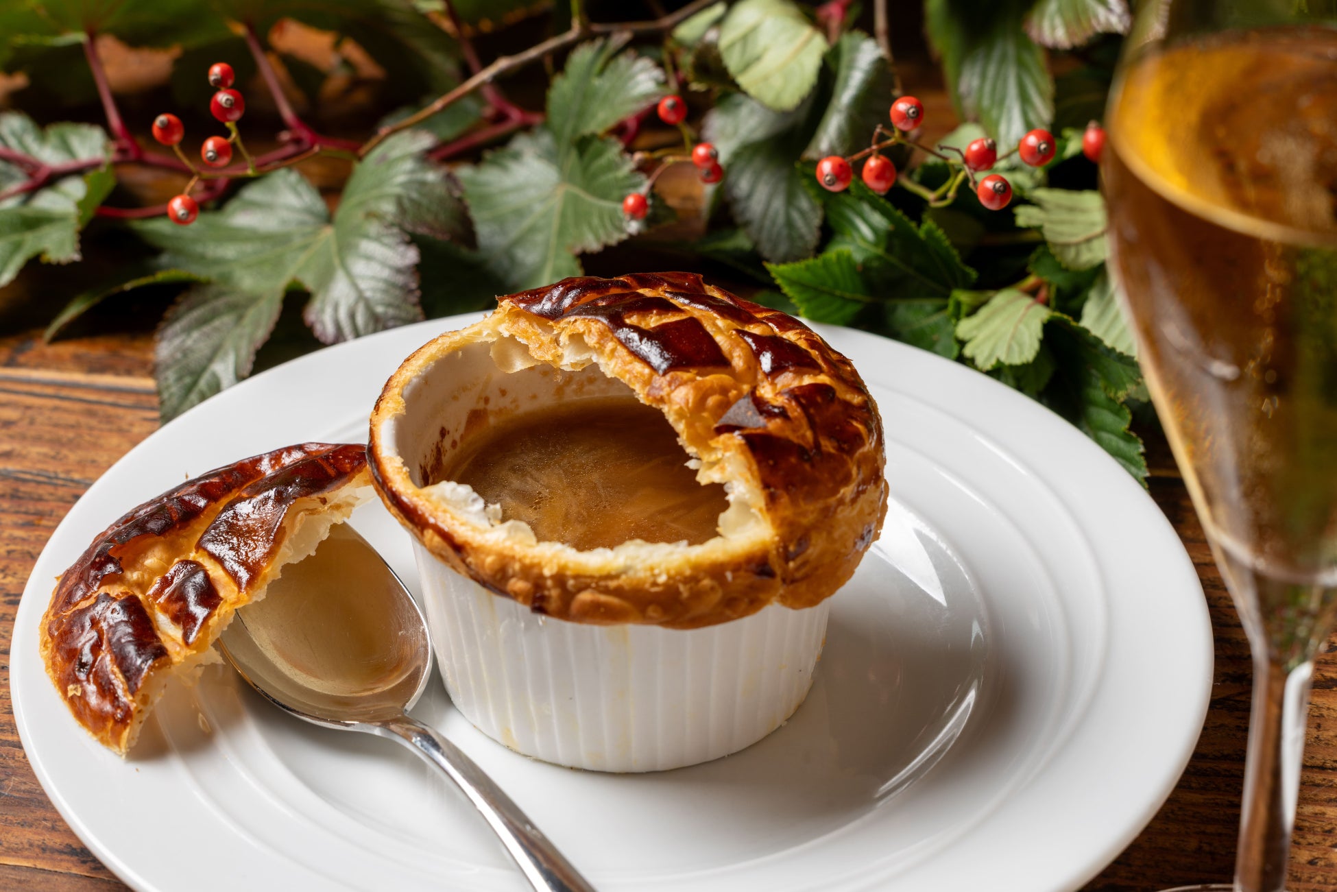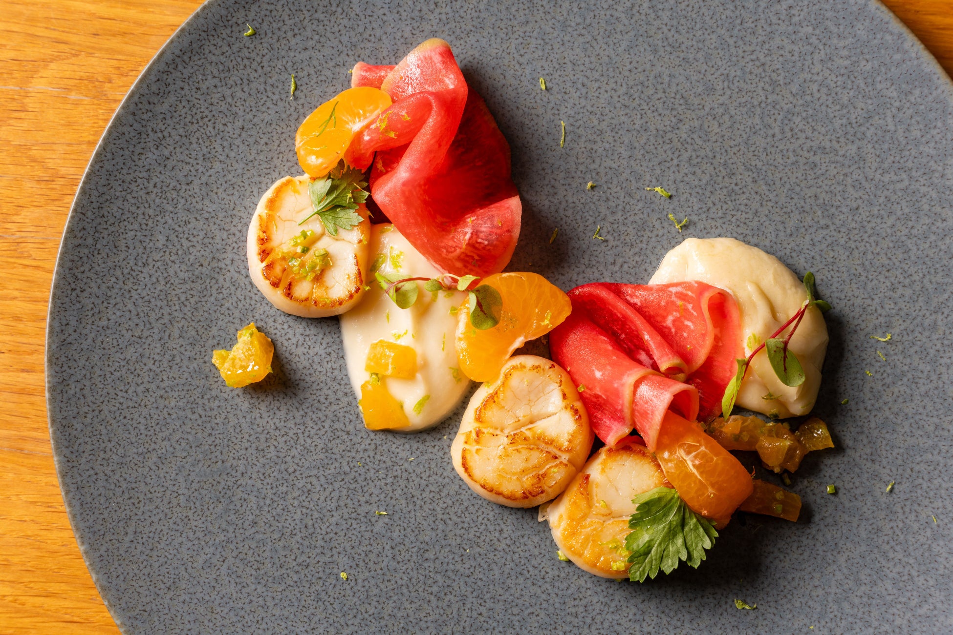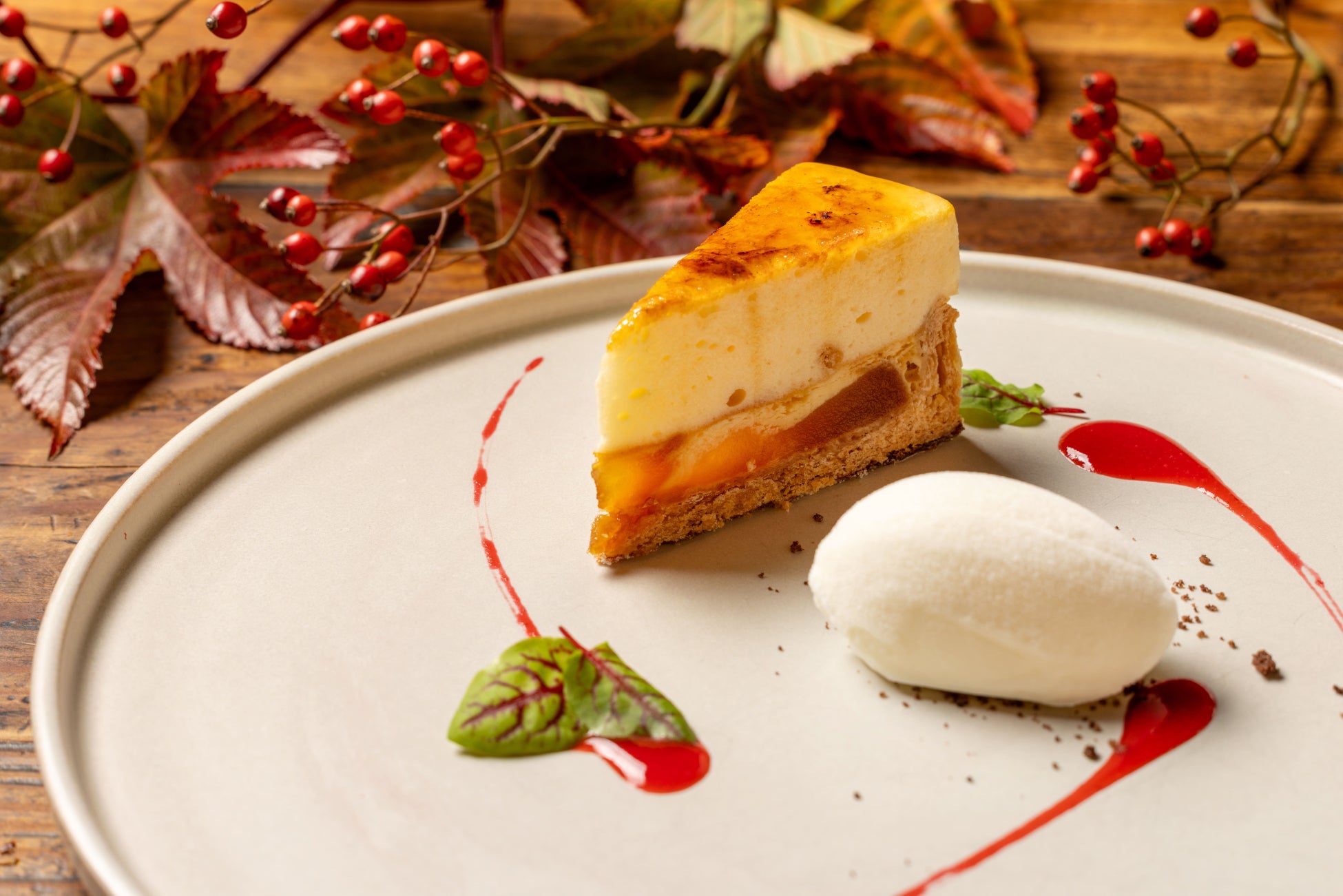 メインダイニング「KŌSA(コウサ)」では、旬の食材と京都らしい味わいを紡いだ、季節の高揚感を楽しむ特別コースを提供いたします。フェスティブ ランチは、アミューズにはじまり、前菜とメインを選べる全5品構成。フェスティブ ディナーおよびクリスマスディナーでは、根セロリのヴィシソワーズ、北海道産帆立貝の炙り、リコッタとポテトのピエロギ、オマールロブスターのリゾット、京都産黒毛和牛のメインなど、冬の恵みが詰まった全6品のコースをご堪能いただけます。デザートは、柑橘のシャーベットやビュッシュドノエルに加え、クリスマスディナー限定で、ストロベリーと黒ごまクランチを合わせたハニー&タヒニのセミフレッドなど、余韻に遊び心を添える一皿を提供します。