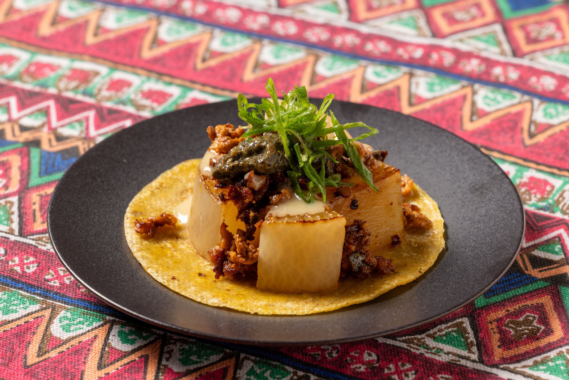 PIOPIKO(ピオピコ)では、フェスティブ ランチとハイティー ギャザリング & クリスマスギャザリングを提供します。メキシコのストリートカルチャーをルーツに、京都の食材や発酵のニュアンスを織り交ぜた、にぎやかにシェアして楽しむスタイルのフェスティブメニューを展開します。フェスティブ ランチ(全13品)は、サーモンとイクラのトスターダ、蕪のカルパッチョ、カリフラワーのタコス、海老のタコス、西京味噌ポークと餅のタコスに加え、季節限定で“すき焼きタコス”へのアップグレードも可能で、最後にメキシコ風ショートケーキをお楽しみいただけます。