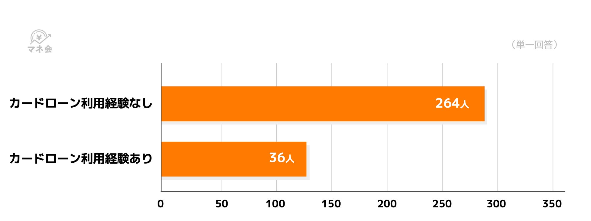 「カードローンを利用した経験がある」と回答した人は12%(36人)にとどまり、88%(264人)は「利用経験なし」でした。