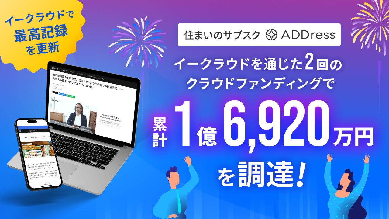 住まいのサブスク「ADDress」がイークラウドを通じた2回のクラウドファンディングで1億6,920万円を調達 - イークラウドで最高記録を更新 -