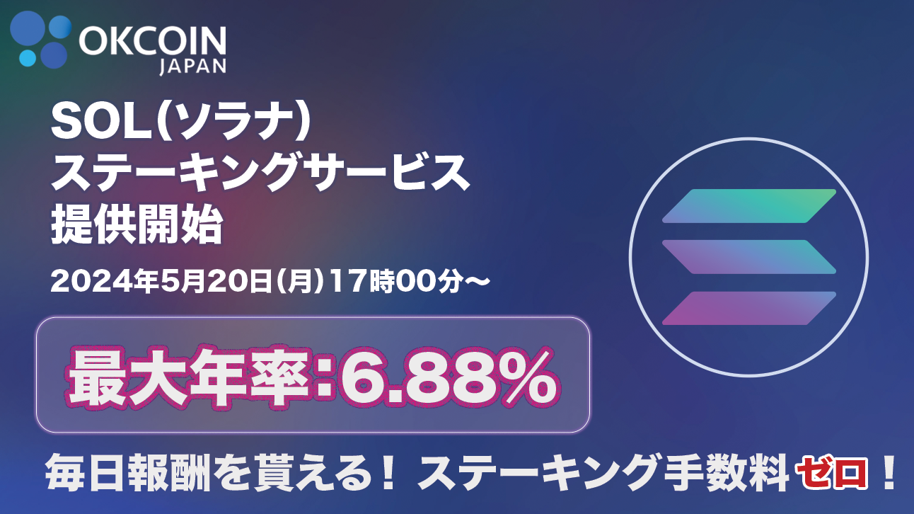 【暗号資産取引所のOKCoinJapan】『ソラナ(SOL)』ステーキングサービス開始のお知らせ