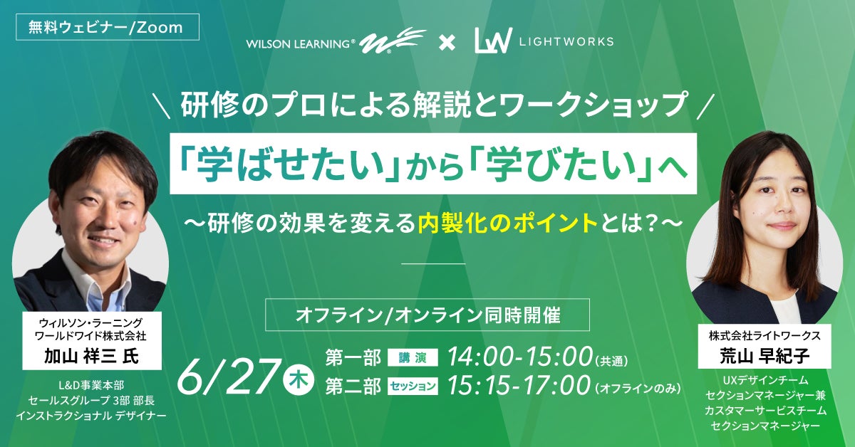 【6月27日(木)無料ウェビナー開催】ウィルソン・ラーニング×ライトワークス共催:研修のプロによる解説とワークショップ「学ばせたい」から「学びたい」へ