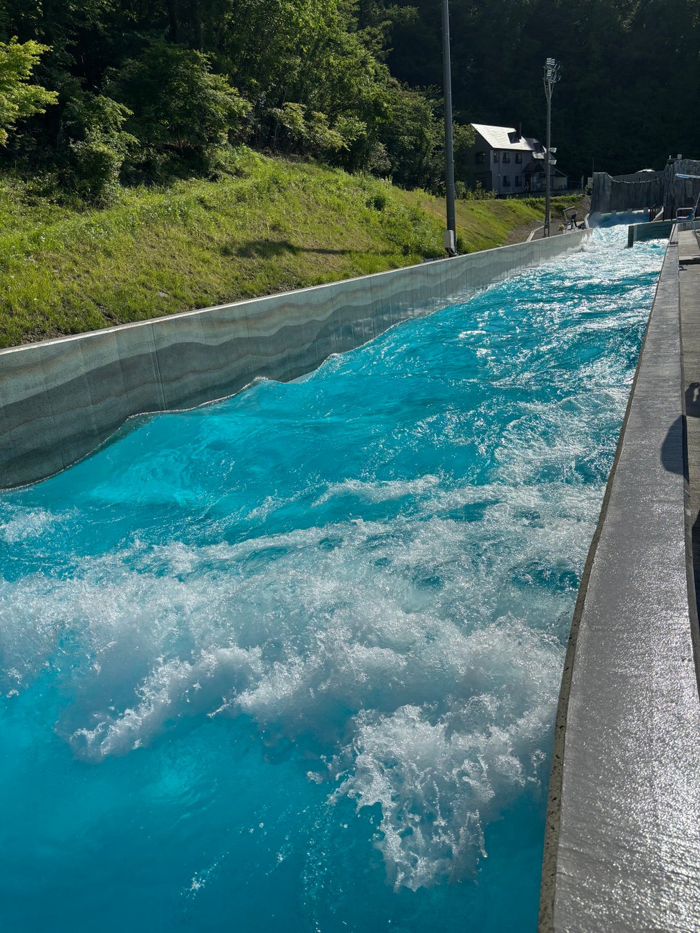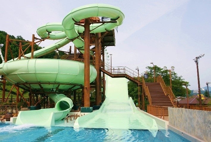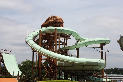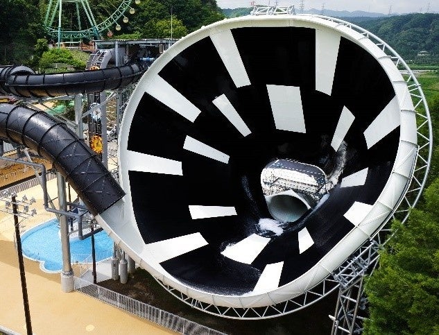 「ドボン!」と水の中へ落ちるという新しい体験ができます。新感覚ウォータースライダーを体感しよう!