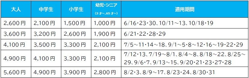 詳しくは公式 HP でご確認ください。(https://www.summerland.co.jp/price/)