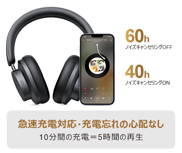 ✧ 650mAhの大容量バッテリーで連続再生時間を60時間に!10分間の充電でも最大5時間の利用が可能!