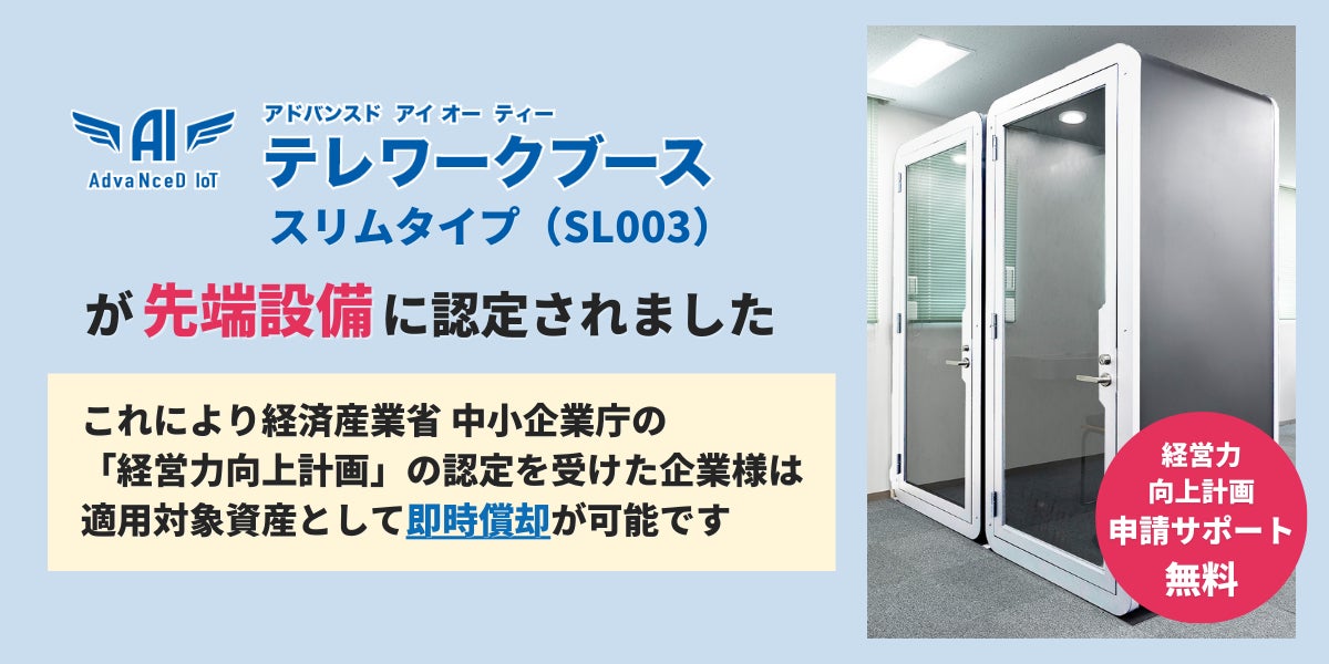 【節税対策にも効果的】「AdvaNceD IoTテレワークブース」が経済産業省の中小企業等経営強化法による”即時償却が可能な先端設備”として認定されました!