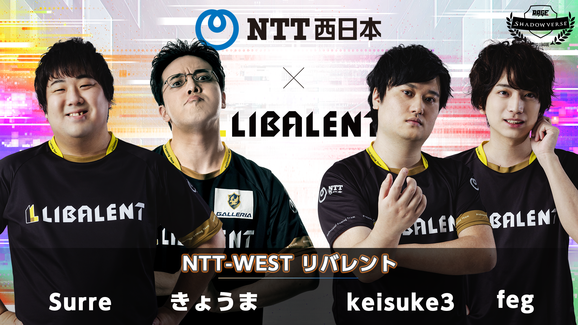 2022年1月30日に行われた「RAGE Shadowverse Pro League 21-22 2nd Season」の王者となった「NTT-WEST リバレント」は、最終節にて全ての戦いをストレート勝ちで優勝。1st Seasonは3位という結果でしたが、2nd Seasonからきょうま選手が加入し大活躍。勢いのあるチームです。