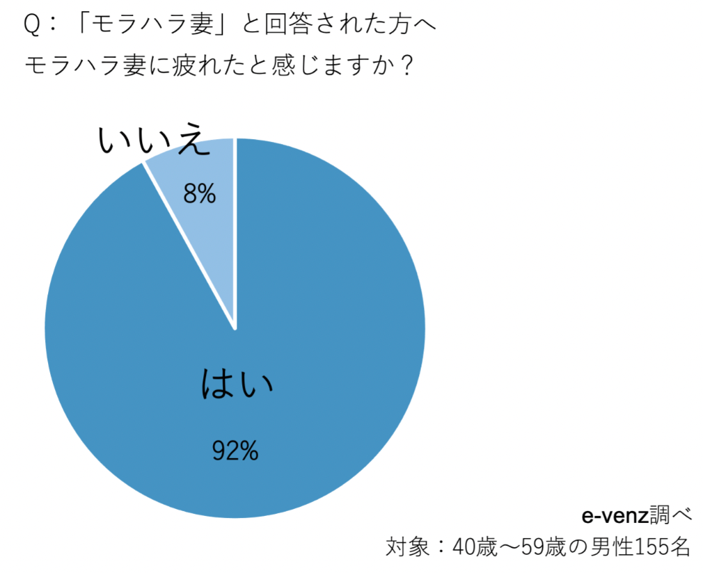 回答した92%の男性が「モラハラ妻に疲れた」と答えています。