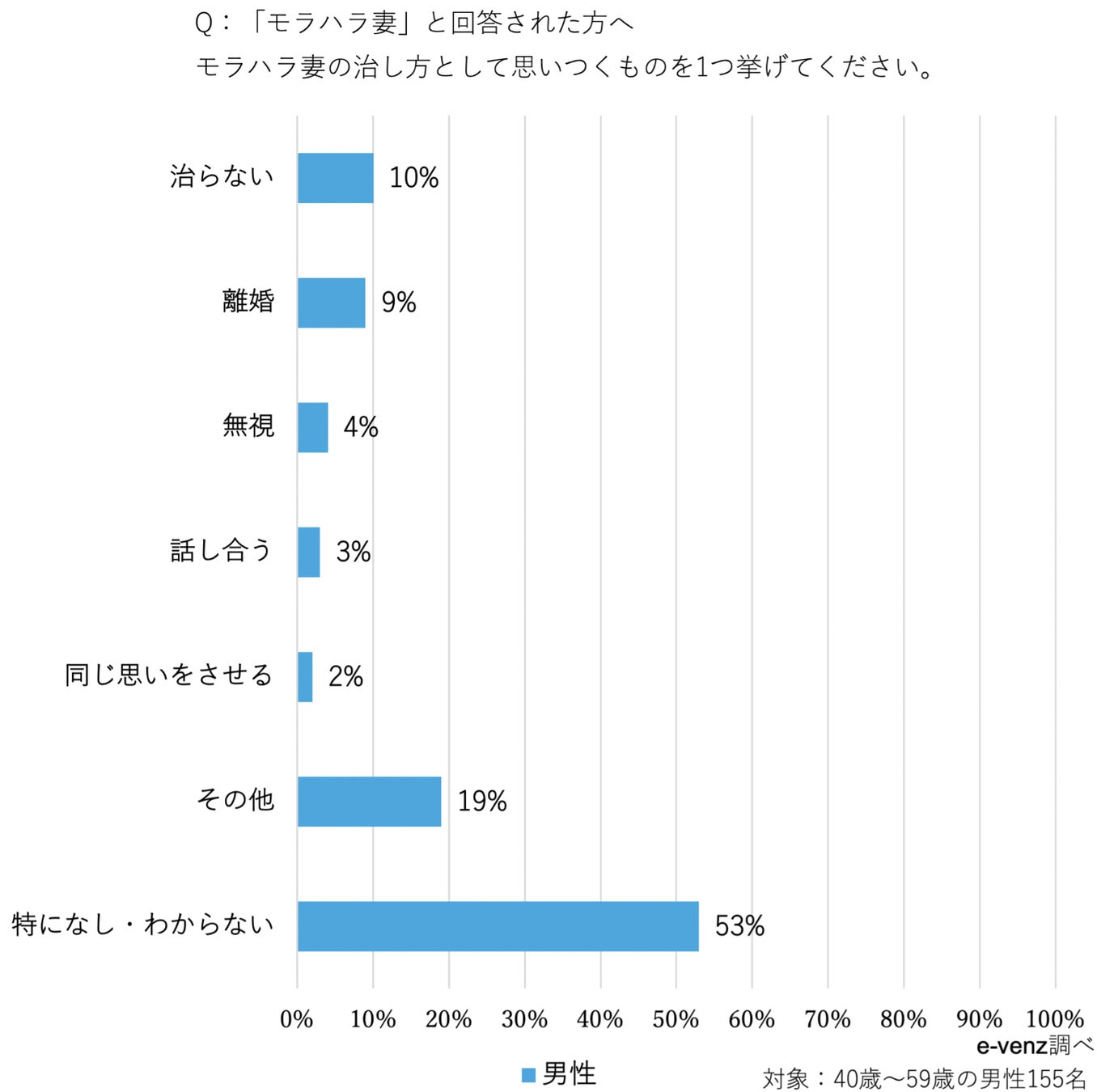 婚活・恋活や街コンなど中心とする男女の出会いメディアe-venz(イベンツ)を運営するノマドマーケティング株式会社(所在地:東京都渋谷区、代表取締役:三輪賢治)では、全国の40代から50代の既婚男性を対象にモラハラ妻についてのアンケートを実施しました。