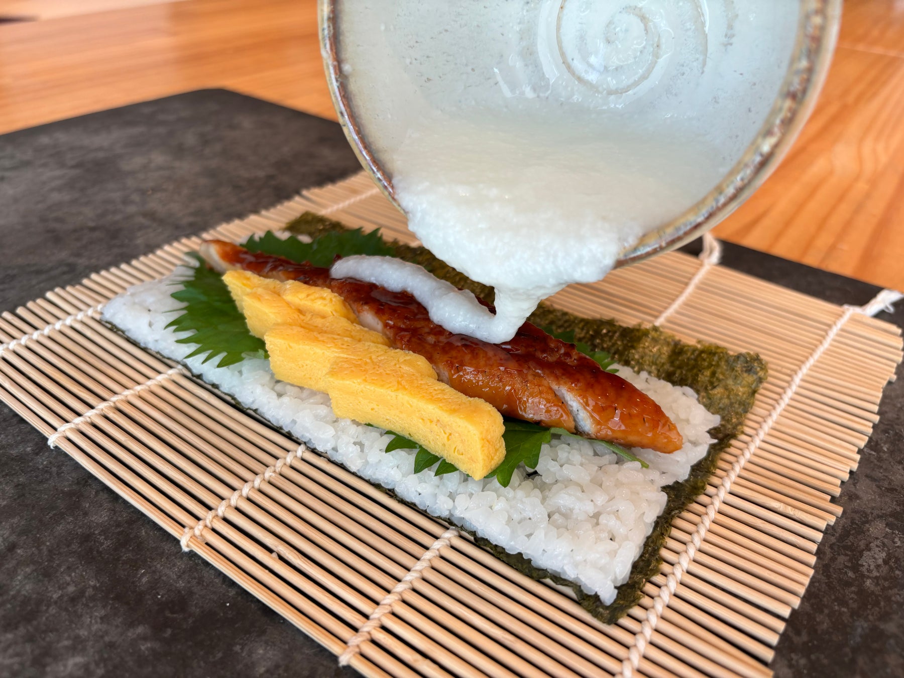 うなぎは通常のネタの倍量で、おろしたての”とろろ”が付きます。