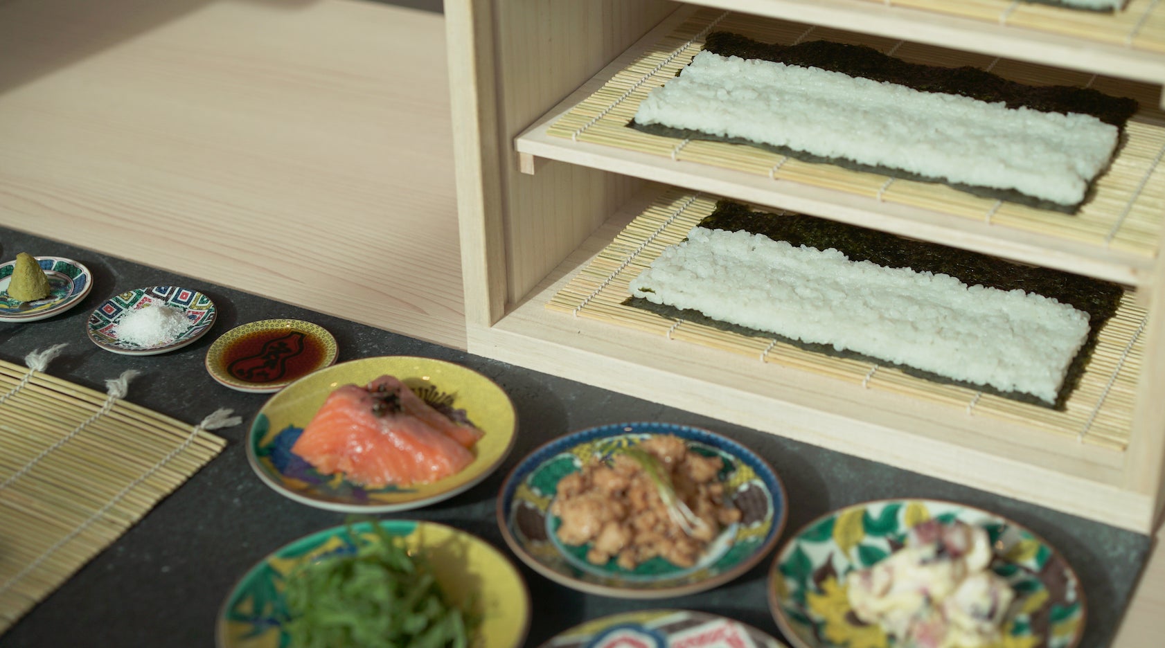 日本の伝統的な、細巻き寿司や天ぷら、お茶を現代的なビジュアルに落とし込み、視覚・味覚・そして体感する現代創作和食料理店。ここ金沢の街で昔から親しまれてきた「細巻き寿司」を、「自分の手で完成させて食べる」という行為も楽しめる体感型レストランです。他にも、利き茶スタンドで8種類の日本茶もお楽しみいただけるなど、日本の伝統的な食文化を、カジュアルにお楽しみいただけます。