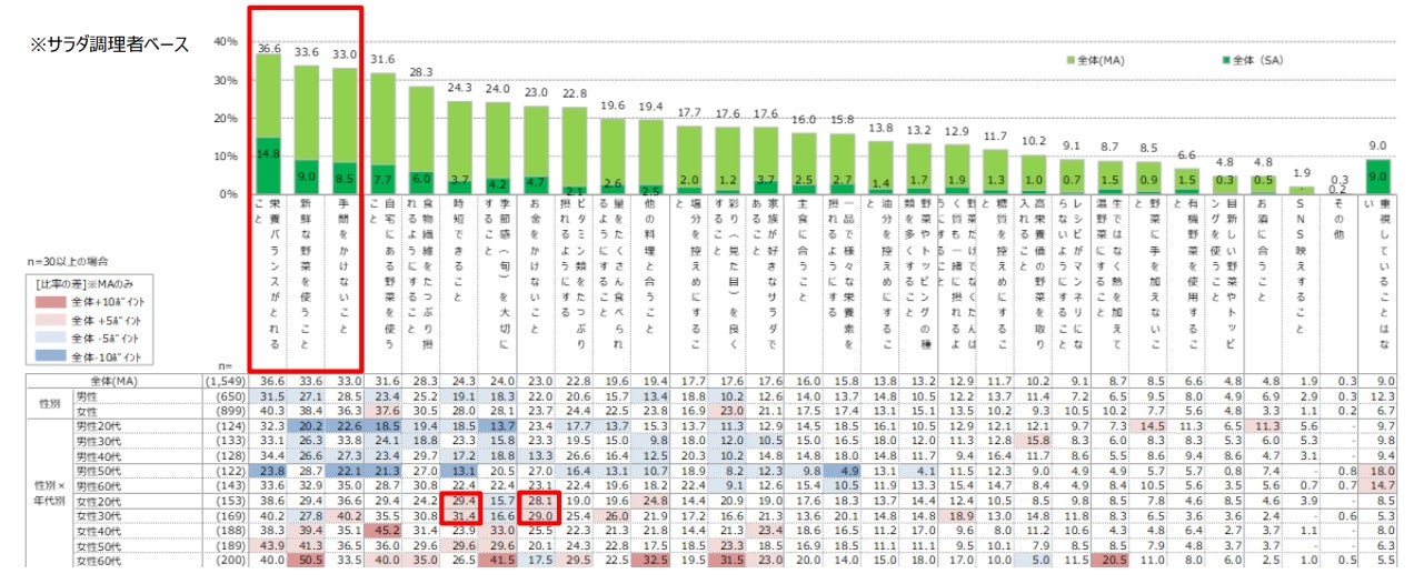 サラダを作る時に重視していること 1位は「栄養バランスがとれる」
