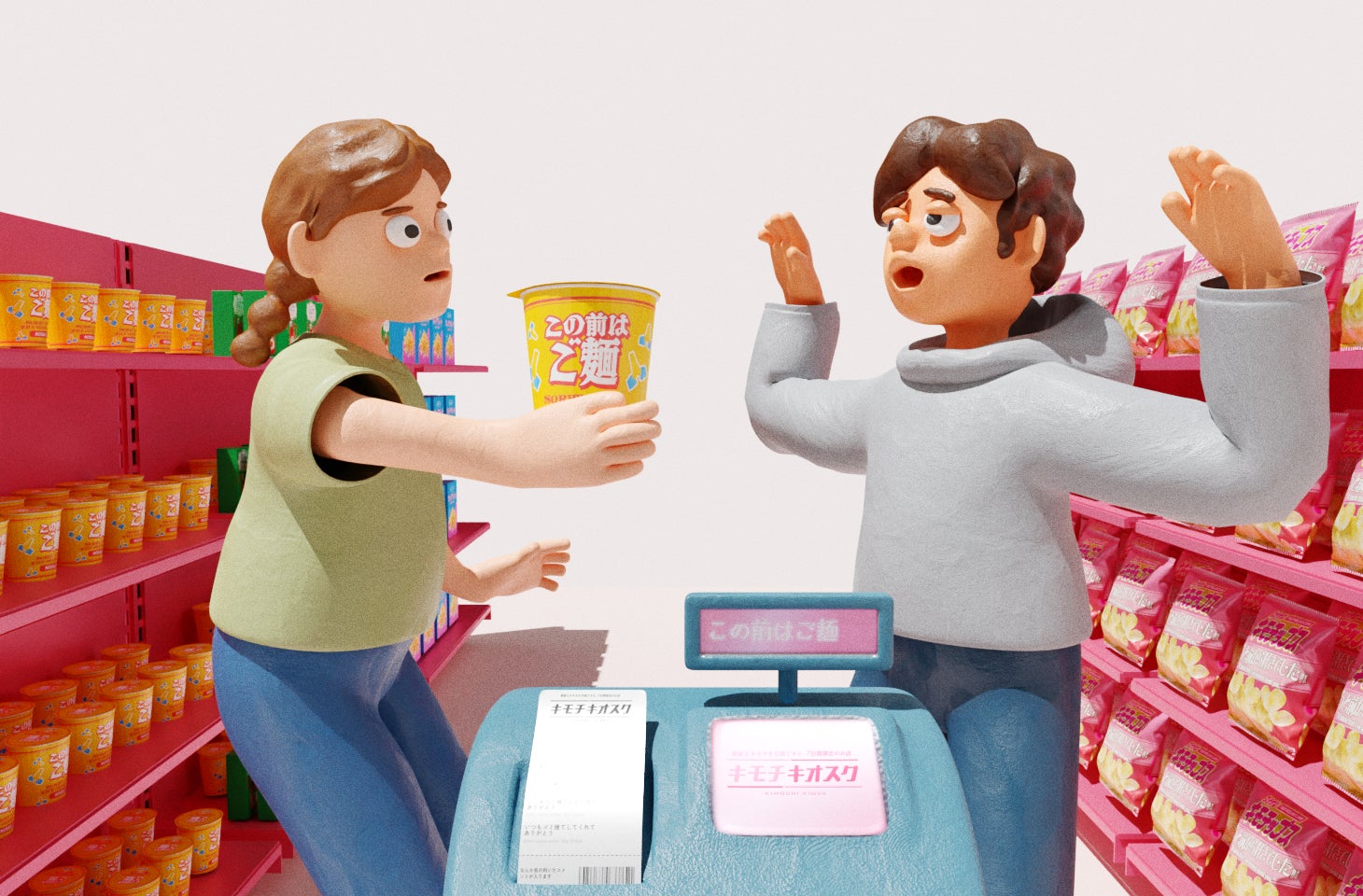キモチキオスクは、伝えたかった素直なキモチを交換できる、7日間限定の体験型展示です。コンビニエンスストアのような空間で、来場者は自分の気持ちを表す商品を棚から探し出します。タイミングを逃した感謝やちょっとした賞賛、お節介なアドバイス、直してほしい癖、いまさら伝えづらい謝罪など、ユーモアとアソビゴコロ溢れる体験を通じて、お互いの気持ちや感情を改めて知り合うことができる展示です。