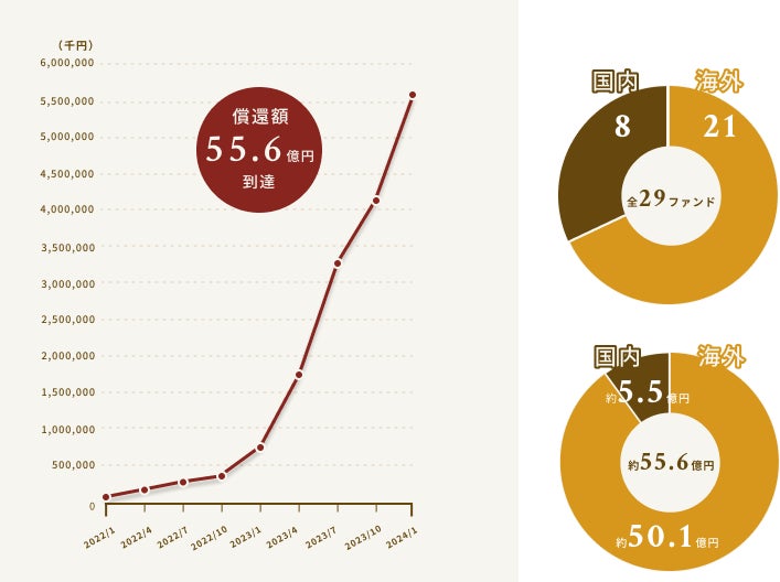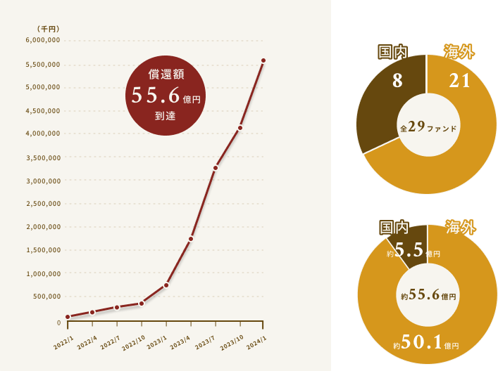 TECROWDでは過去に、29ファンド、合計55.6億円の元本償還を実施しています。