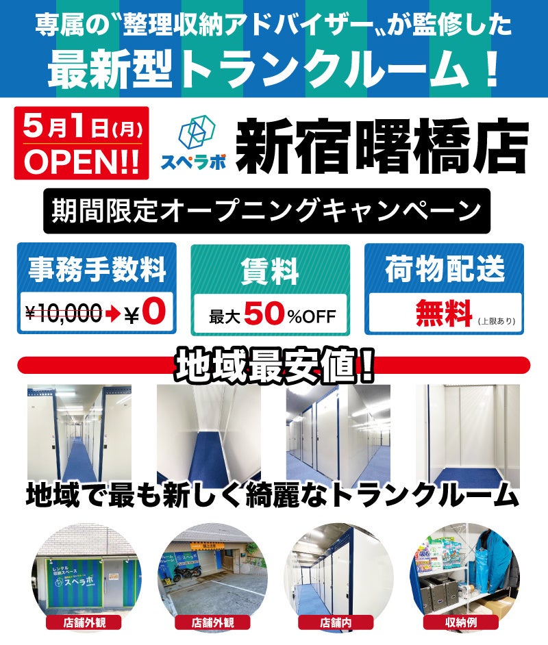 【5月1日(日)オープン】見学から契約、解約まで完全非接触・非対面、お申し込みからご利用まで最短1時間!都内にて絶賛運営中のトランクルーム【スペラボ】が新宿区住吉町曙橋駅に出店!