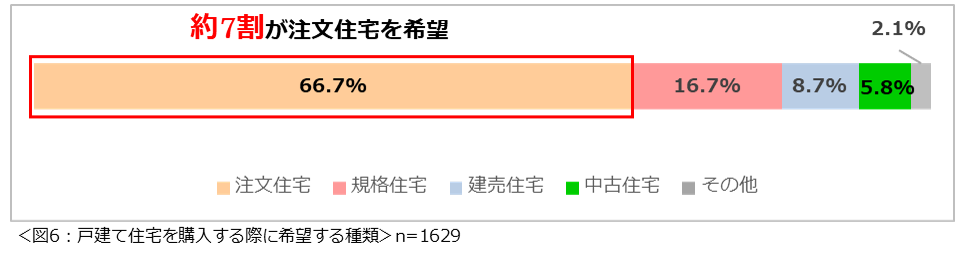 戸建て住宅を購入する際に希望する種類を尋ねたところ、「注文住宅を希望する」という人が最も多く66.7%という結果になりました。(図6)