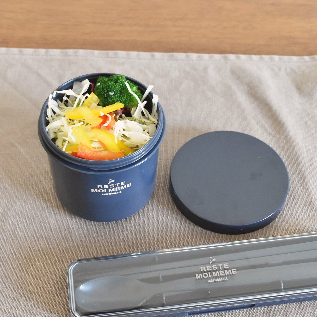 容量430ml。定番のサラダやスープなどはもちろん、そうめんや蕎麦のそばちょことして使ったり、カレーのルーの持ち運びにもちょうどよいサイズ。夏場には冷蔵庫に食べる直前まで入れておいて、電子レンジで直前にあたため。コンテナ複数使いであたたかいもの、冷たいものを別で持ち運びたいときにおすすめです。