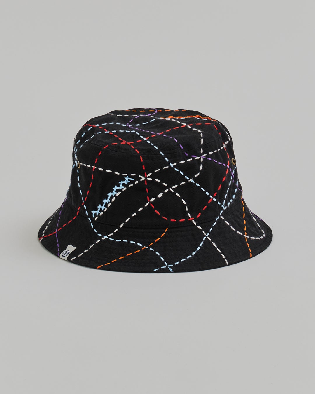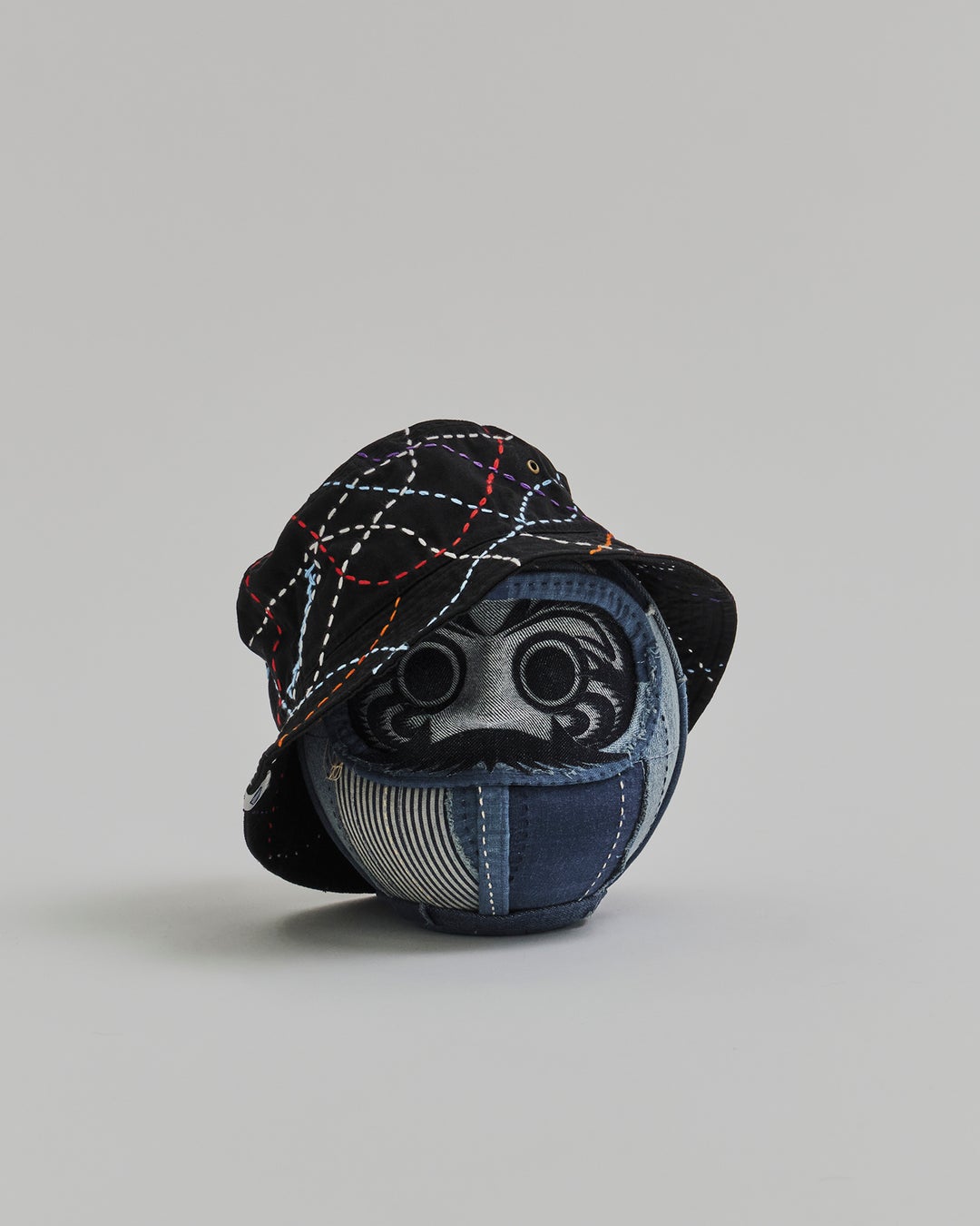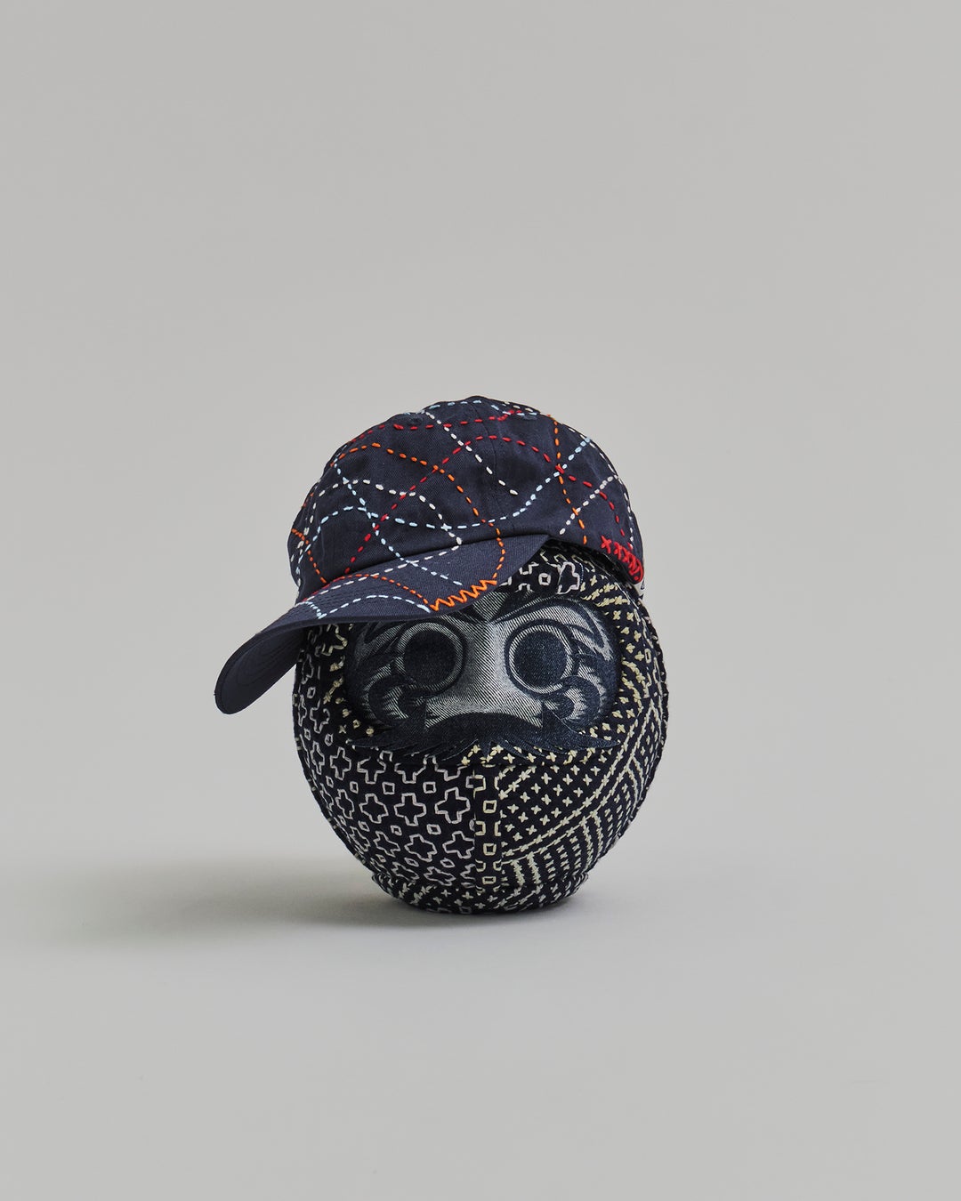 KUON×SASHIKO GAILSからキャップとバケットハットをJAPAN EDITION使用に別注。ベーシックな形に対して、日本の伝統技術を用いてアイキャッチーにした製品です。1点1点刺子のお色や幅のムラが異なる1点ものです。