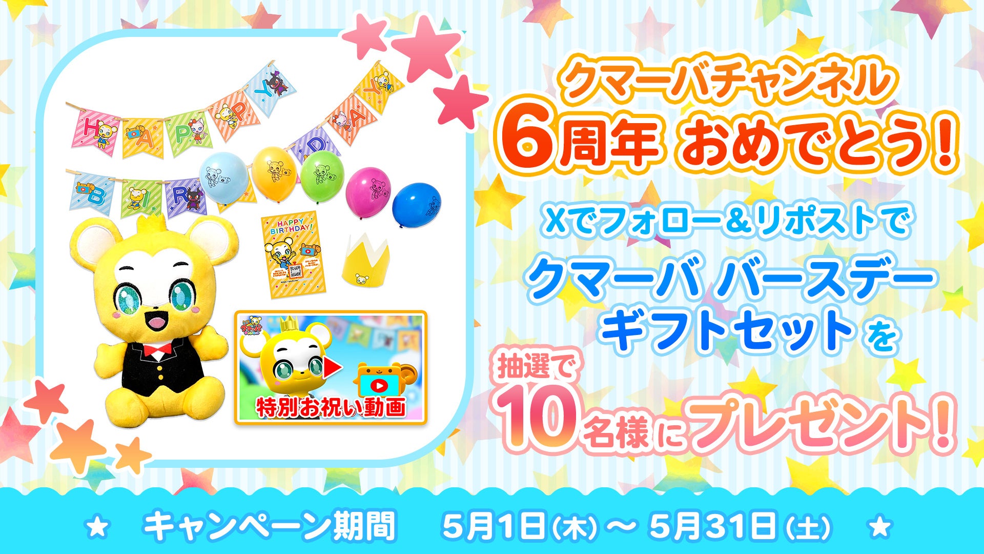 クマーバチャンネル6周年!誕生日おめでとうクマーバ! チャンネル6周年をお祝いしてバースデーギフトセットが抽選10名様に当たるXキャンペーンスタート!