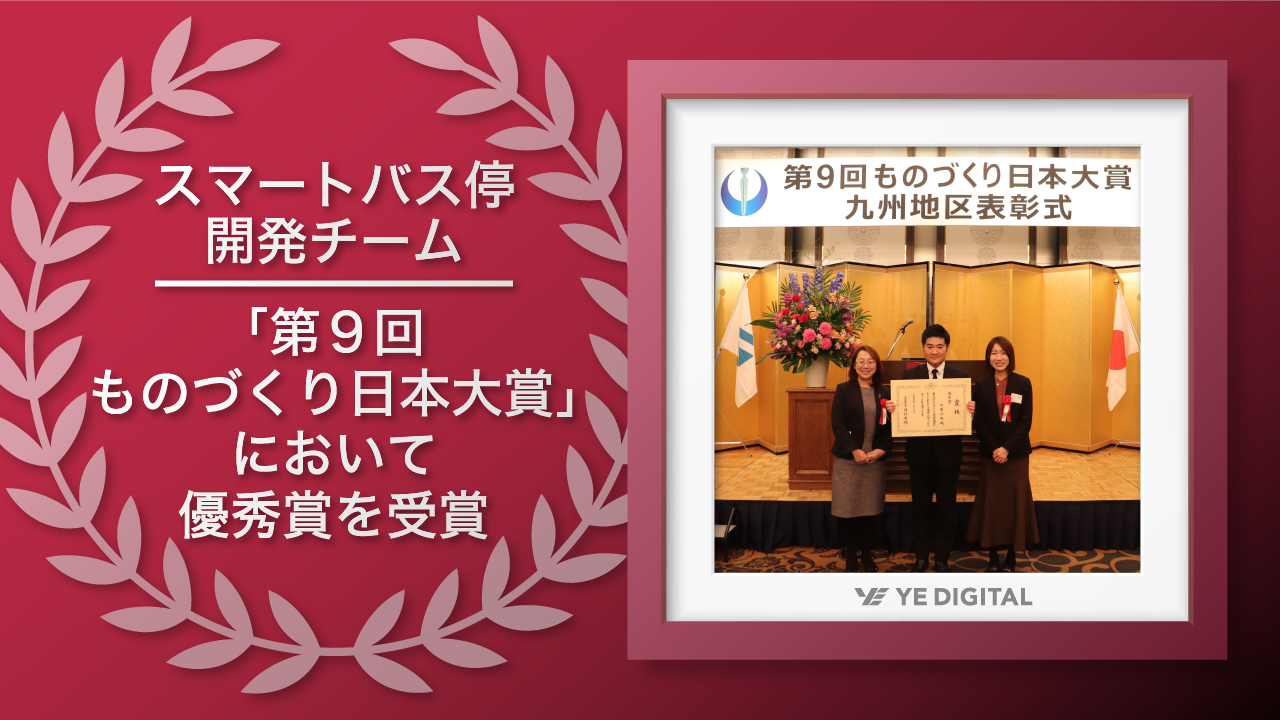 DXによる新たな社会づくりを推進している株式会社YE DIGITAL(本社:北九州市小倉北区 代表取締役社長:玉井裕治 以下、YEデジタル)が提供するスマートバス停の開発に携わったメンバーが、この度、「第9回ものづくり日本大賞」において、優秀賞を受賞いたしました。