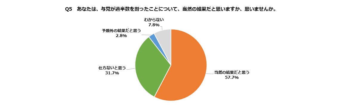 与党過半数割れ「当然の結果」57%「仕方ない」31%