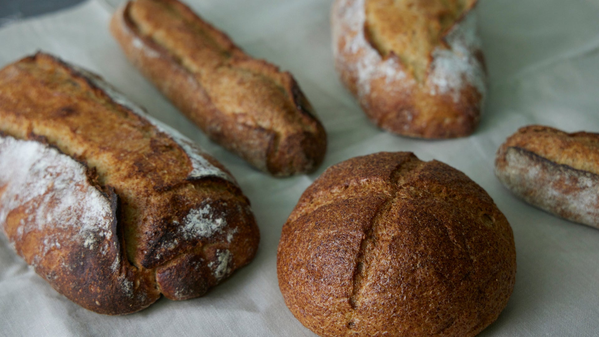 小麦の胚芽とふすまがたっぷり入れた香ばしい、 全粒粉使用のパン。ふんわりしっとり、くちどけの良い食感です。そのまま食べるとしっとり柔らかな質感、トーストするとカリッと、香ばしくなります。