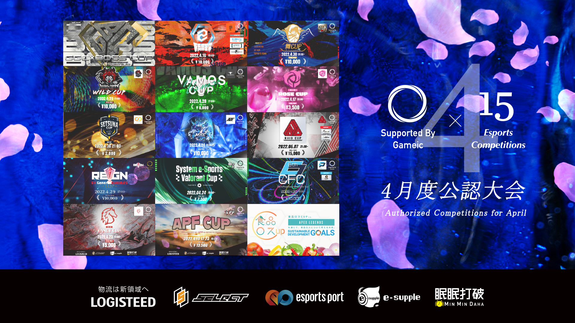 厳正なる審査の結果、以下の15団体様の大会をGameicの4月公認大会とし、協賛及び大会企画、運営、プロモーション、大会クリエイティブのサポートなどの包括的な大会支援を行わせていただきました。