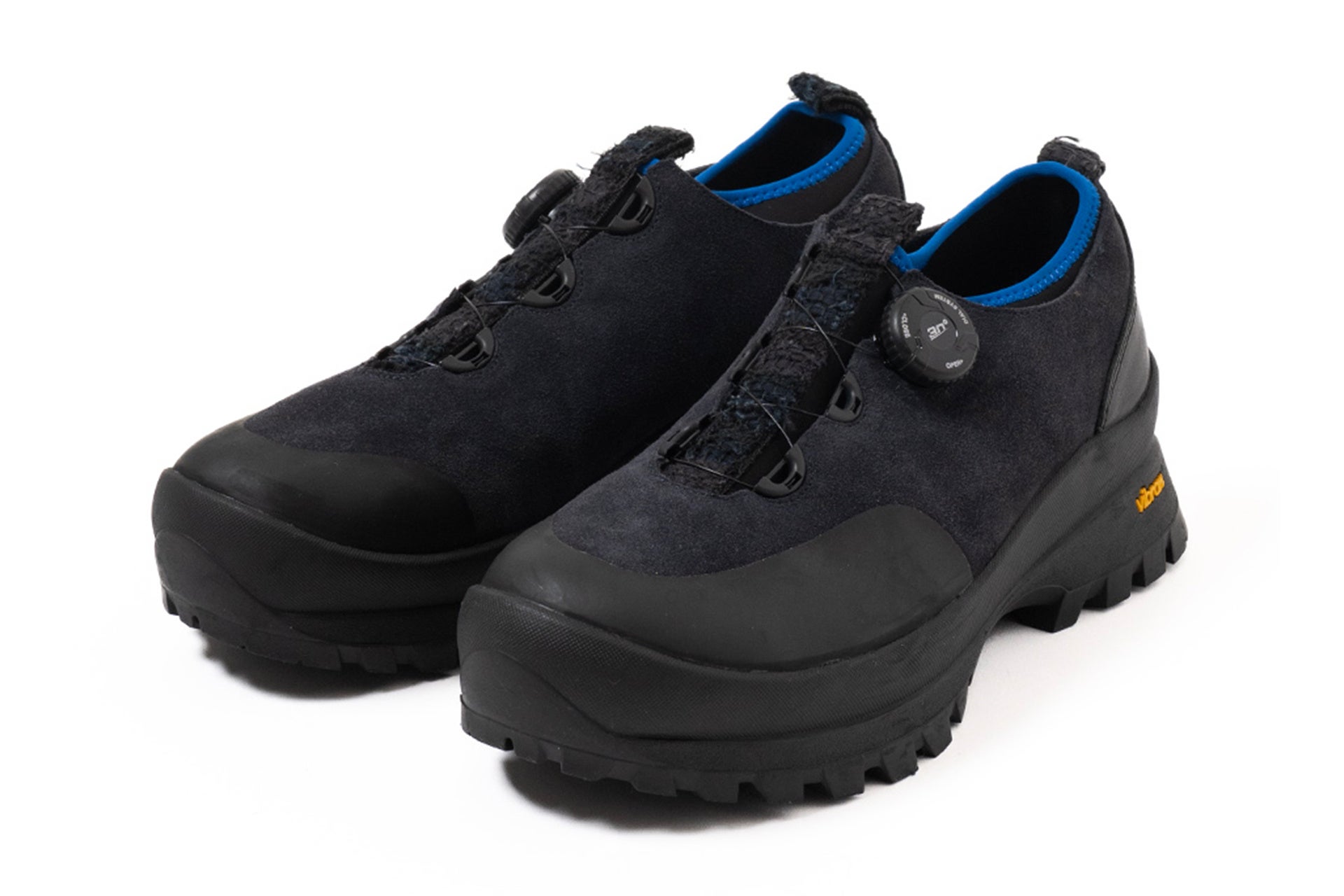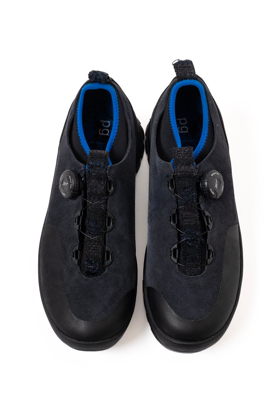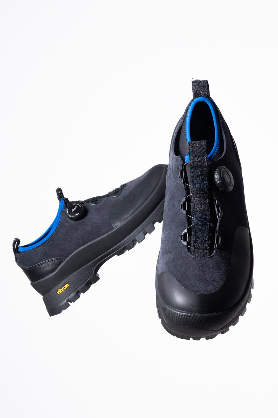 スニーカーショップ〈PLAYGROUND〉発〈pg〉との別注モデル。トレッキングシューズを基に、〈BLUE BLUE JAPAN〉の素材使い、VibramソールとFREELOCKシステムを備えた一足。