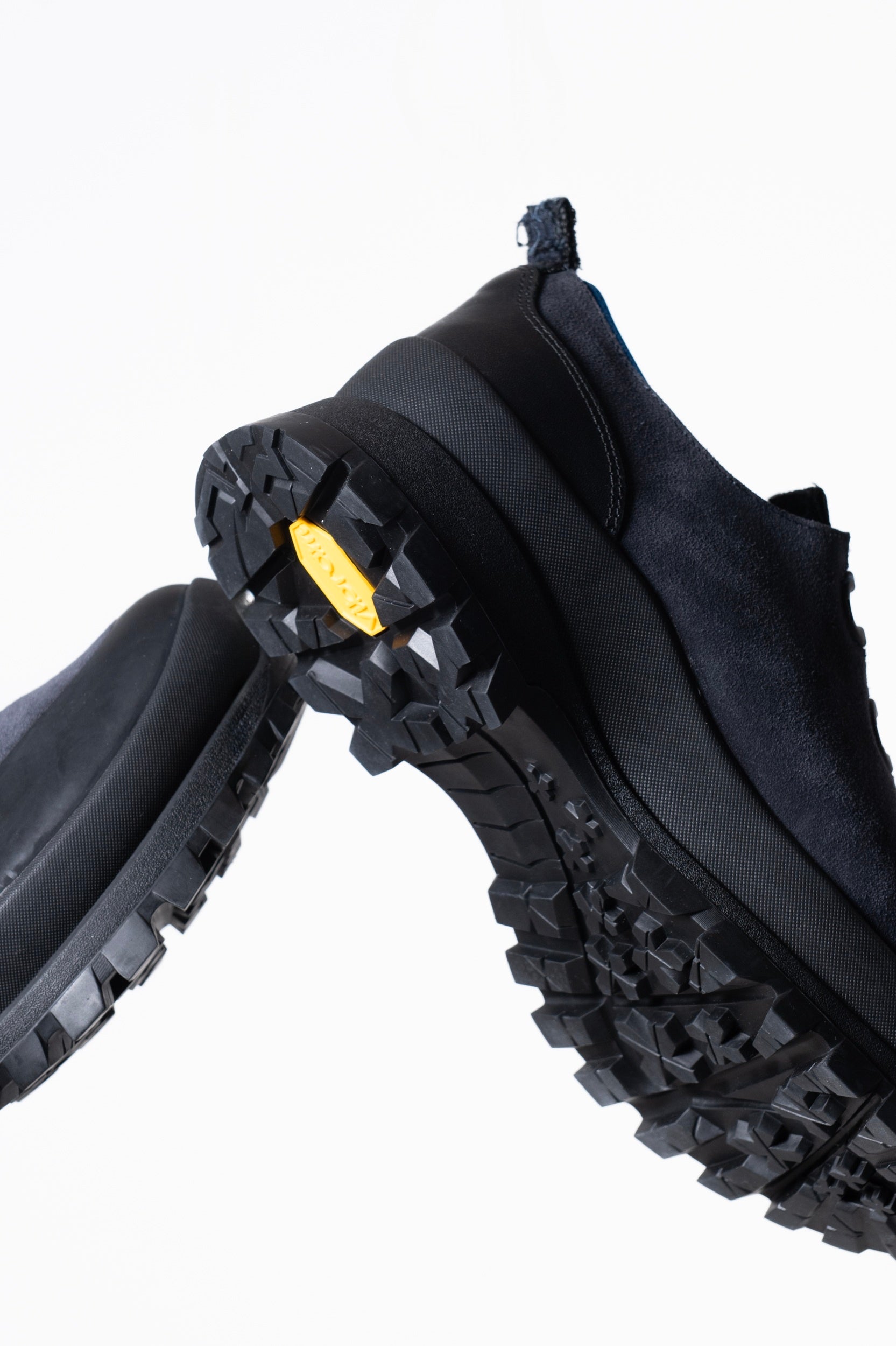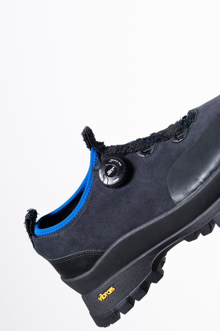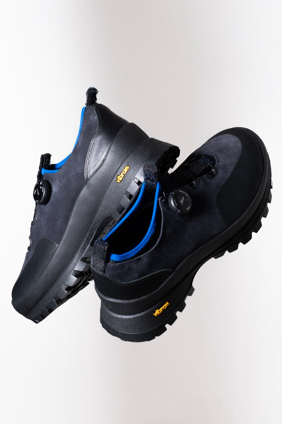 スニーカーショップ〈PLAYGROUND〉発〈pg〉との別注モデル。トレッキングシューズを基に、〈BLUE BLUE JAPAN〉の素材使い、VibramソールとFREELOCKシステムを備えた一足。
